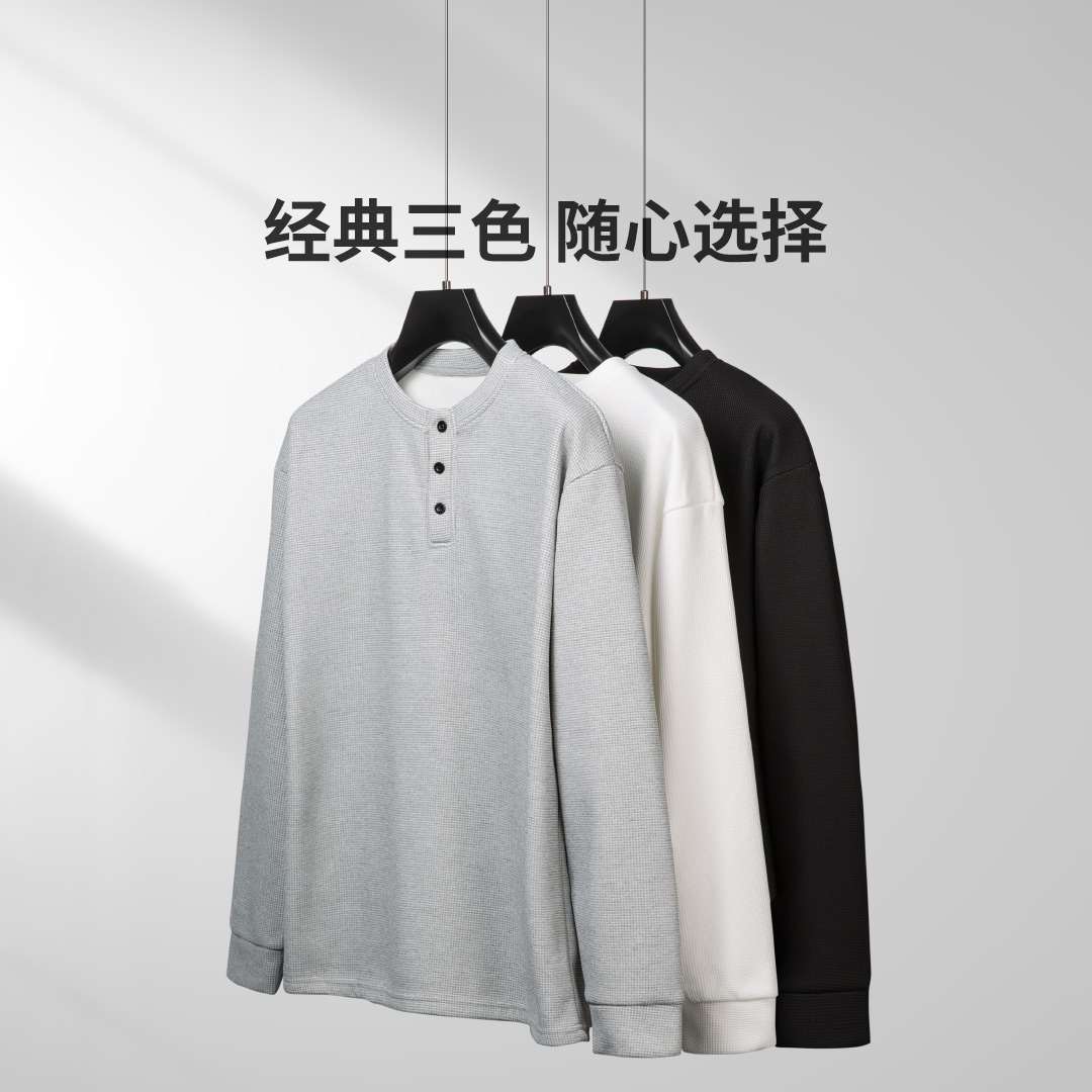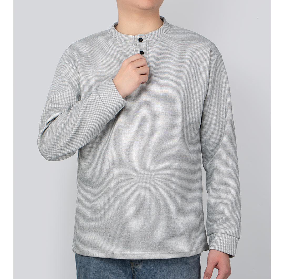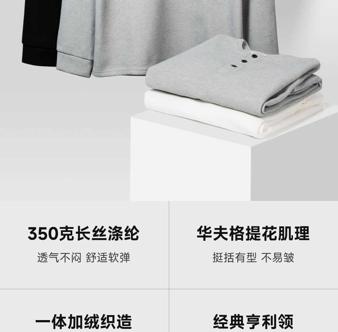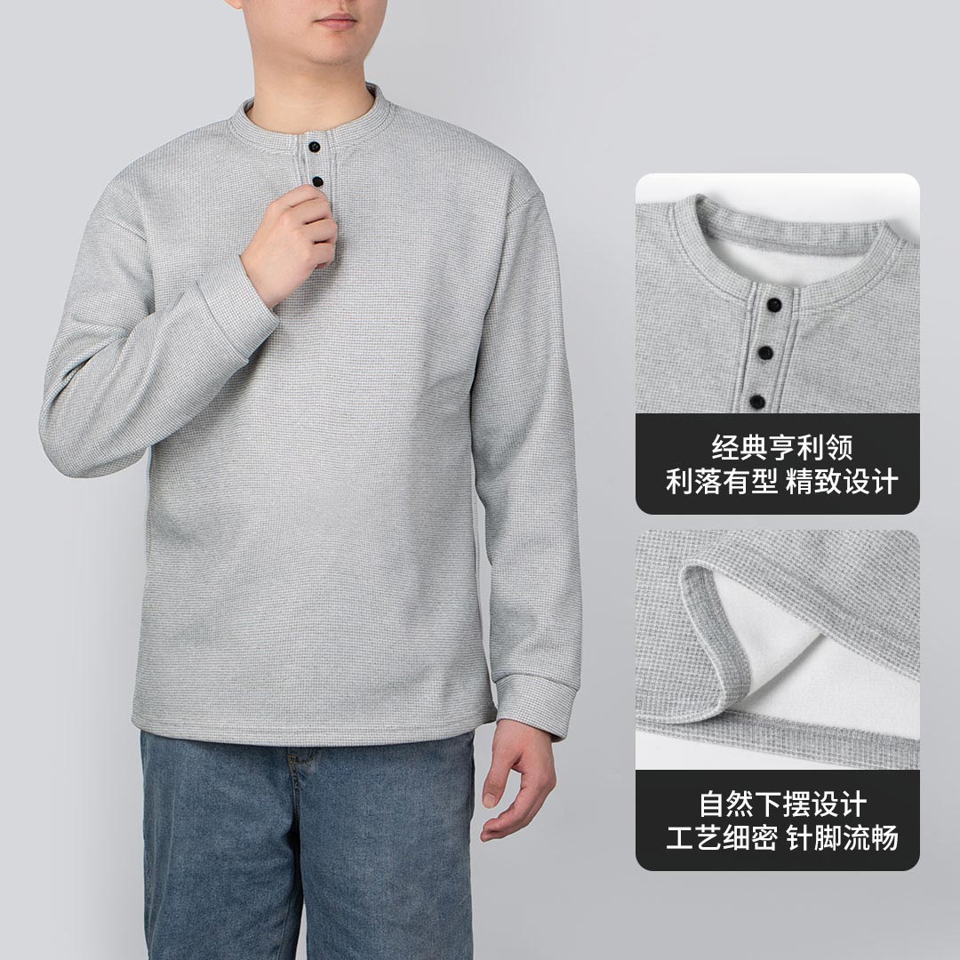 七面 锁温御寒一体绒华夫格亨利领套头衫 XL 灰色