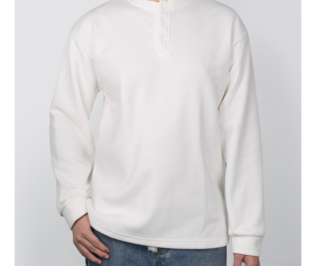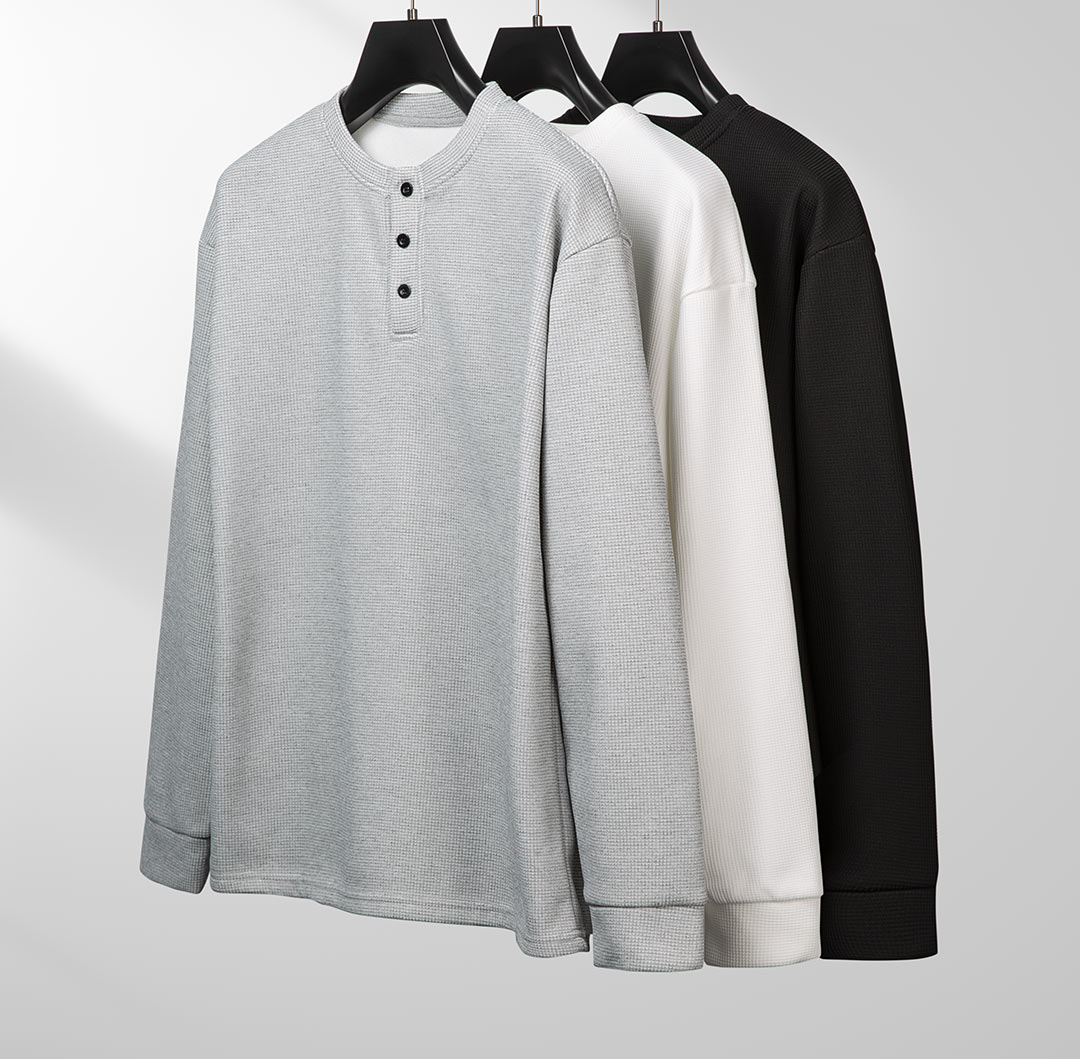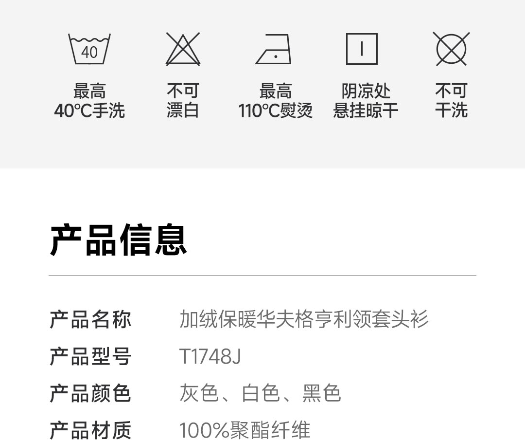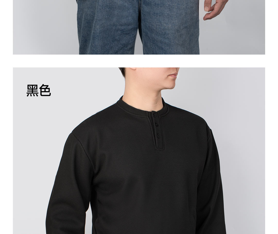 七面 锁温御寒一体绒华夫格亨利领套头衫 XL 灰色