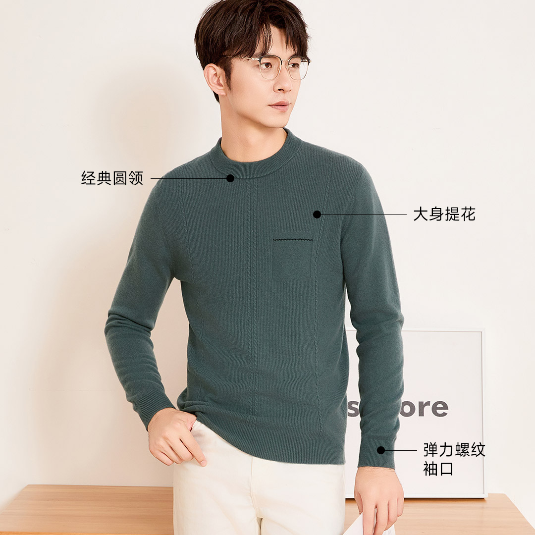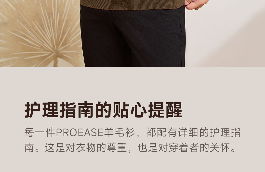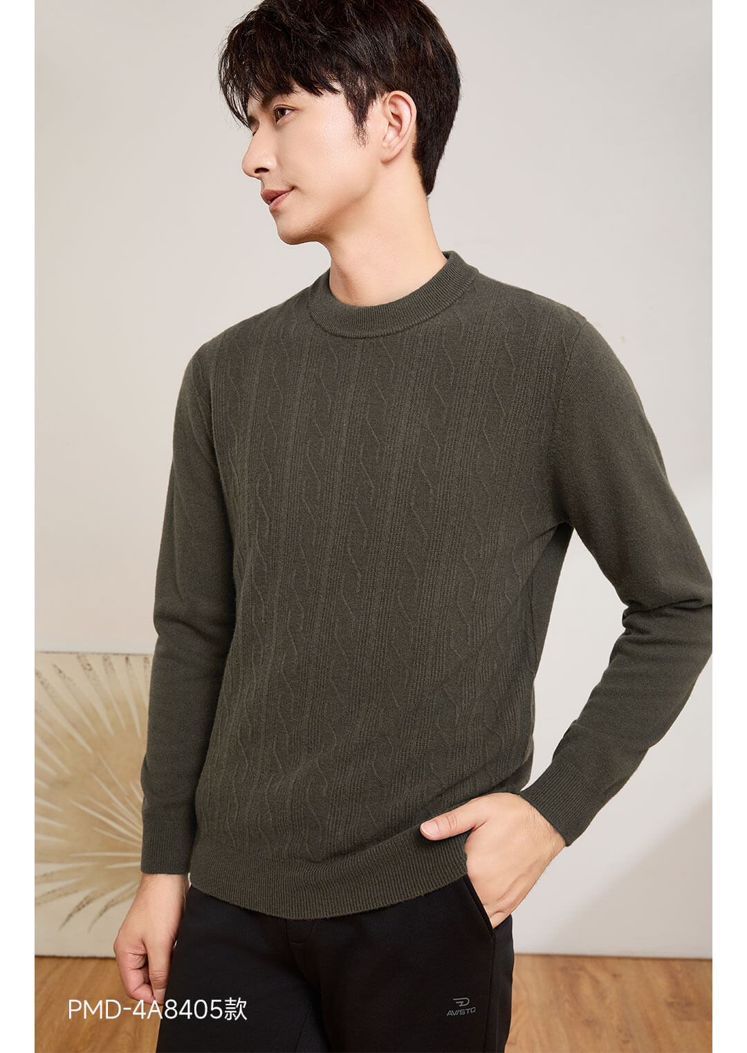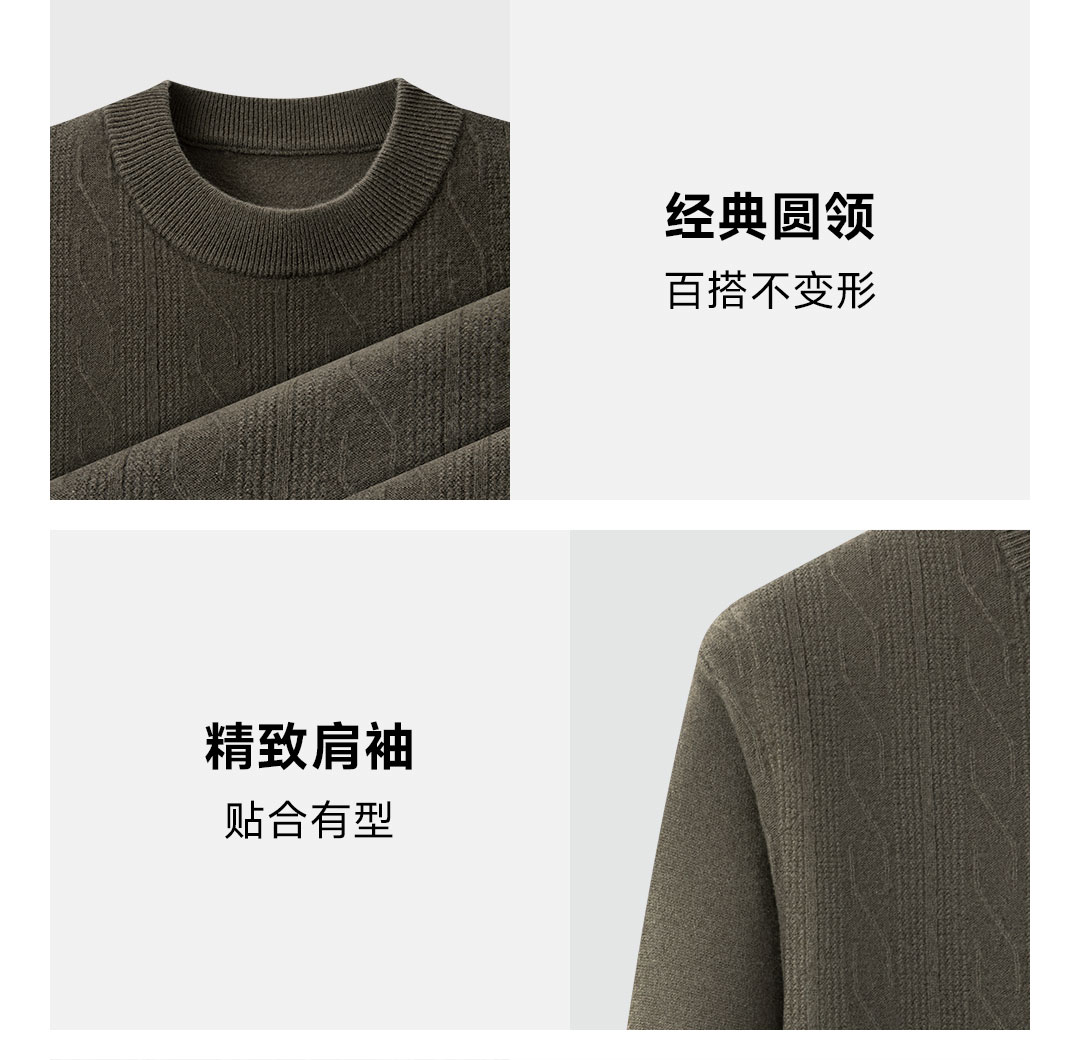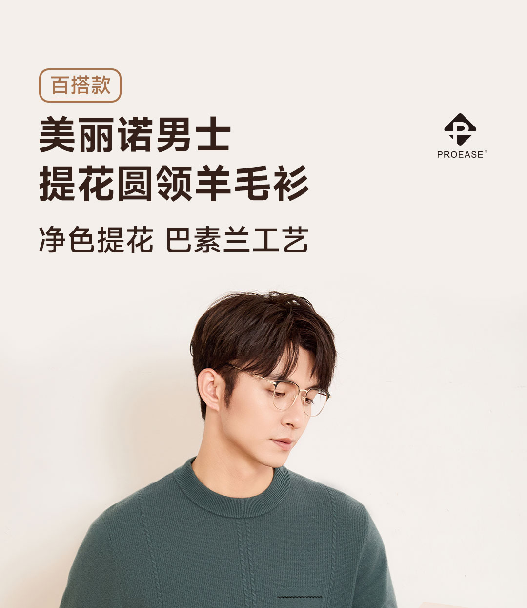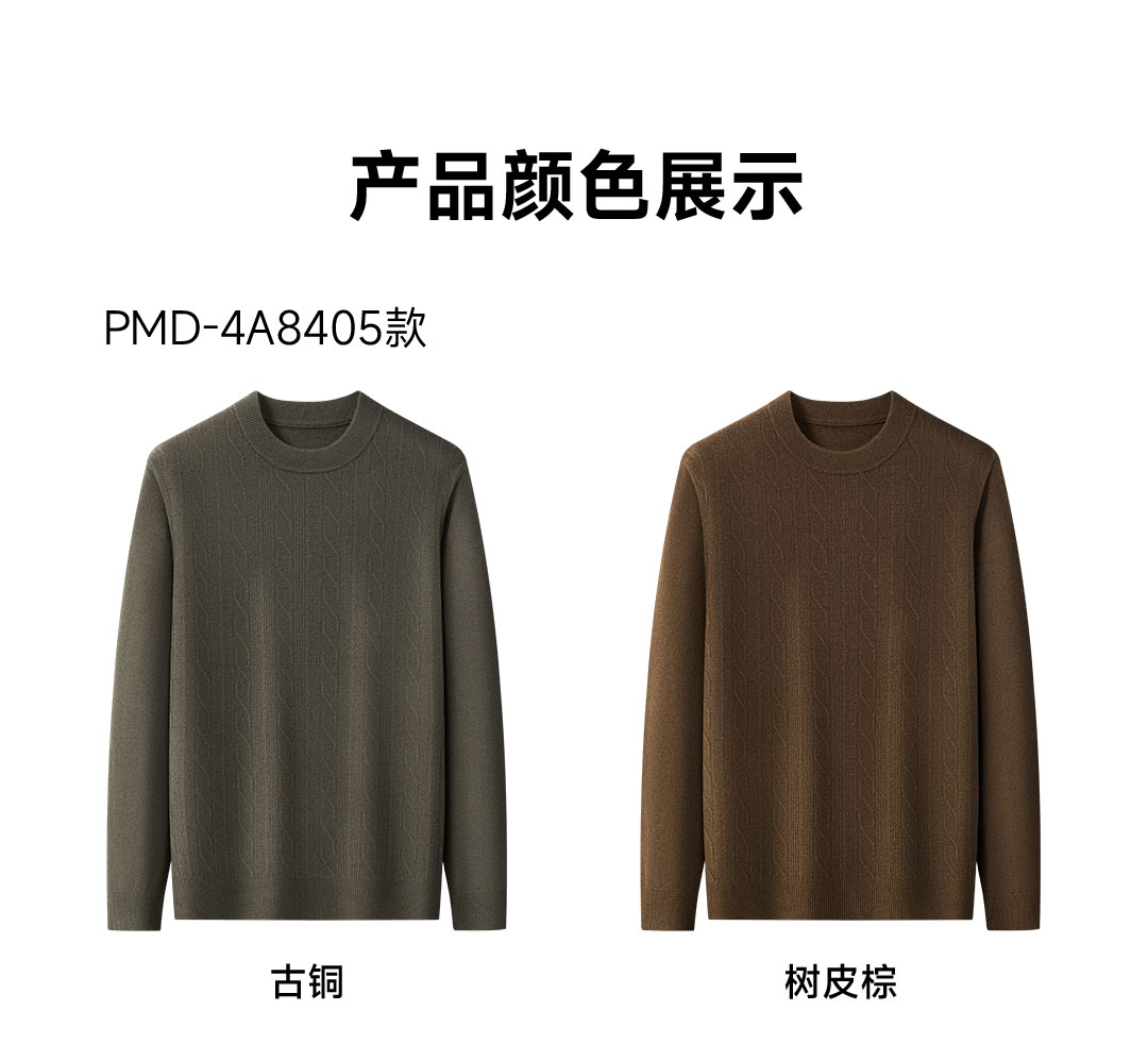 PROEASE美丽诺男士提花圆领羊毛衫 M 8405-古铜