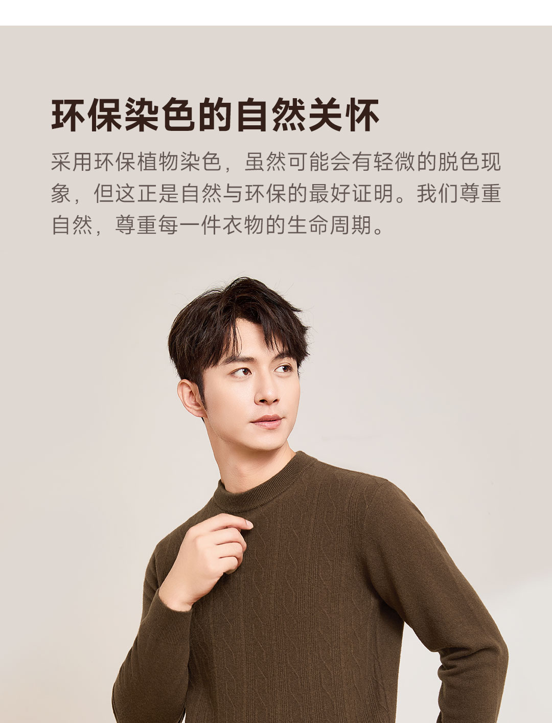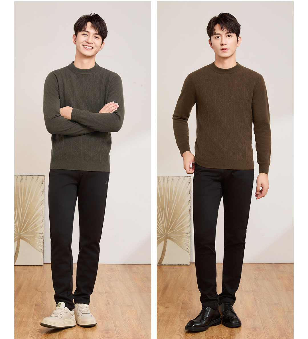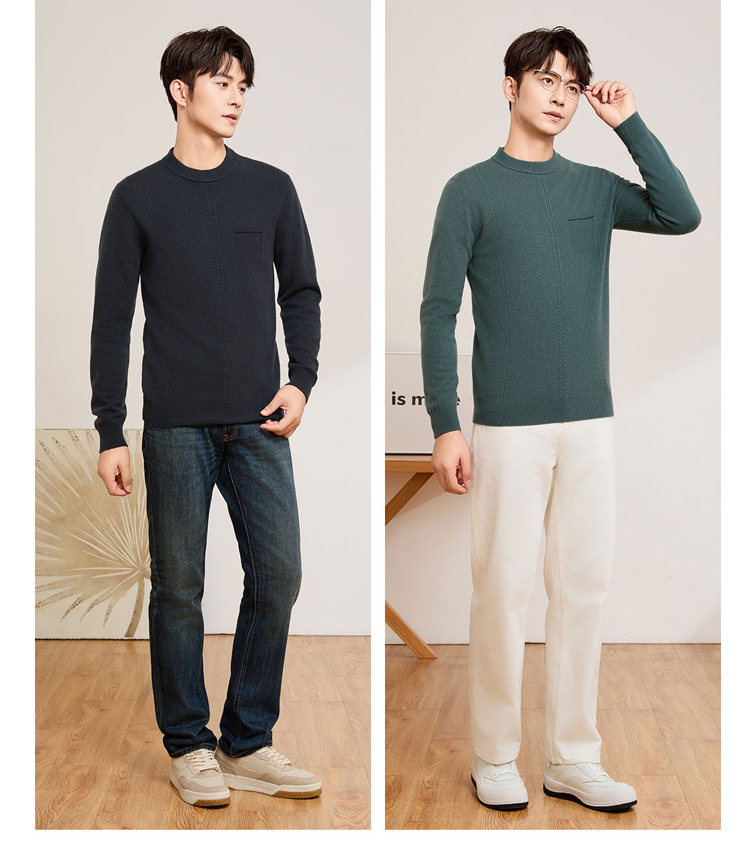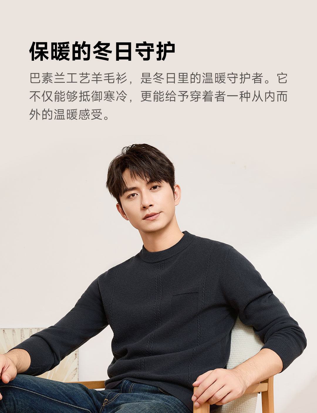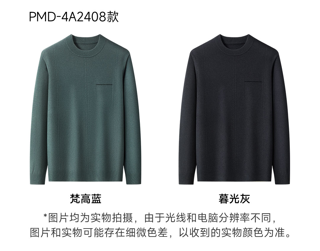 PROEASE美丽诺男士提花圆领羊毛衫 M 8405-古铜