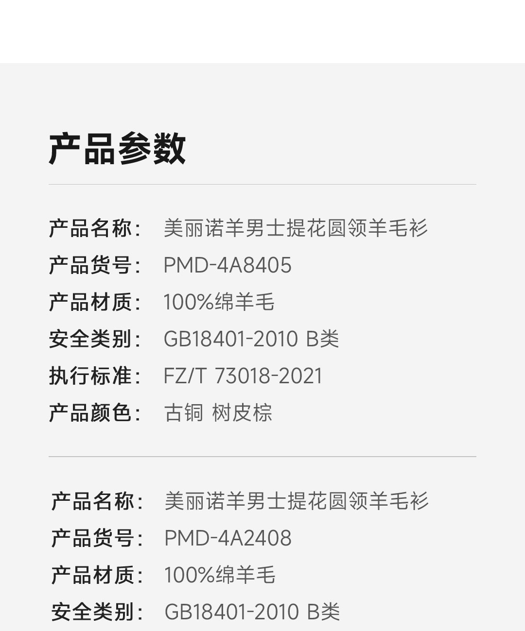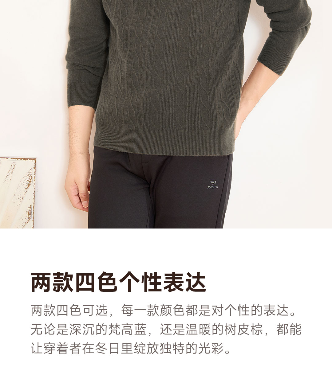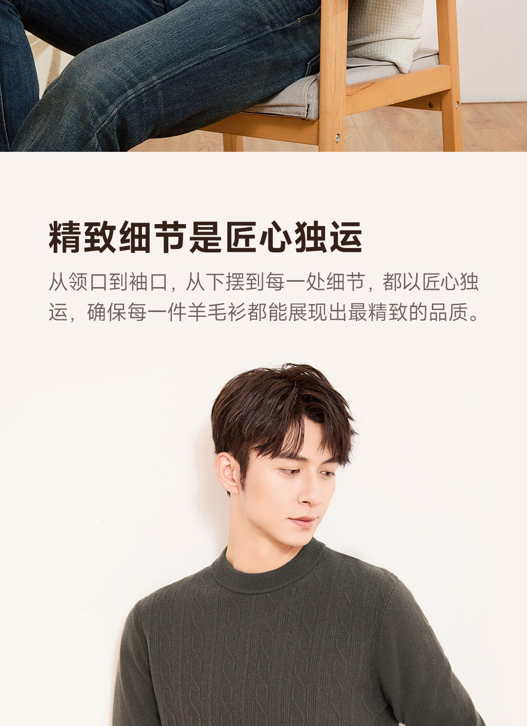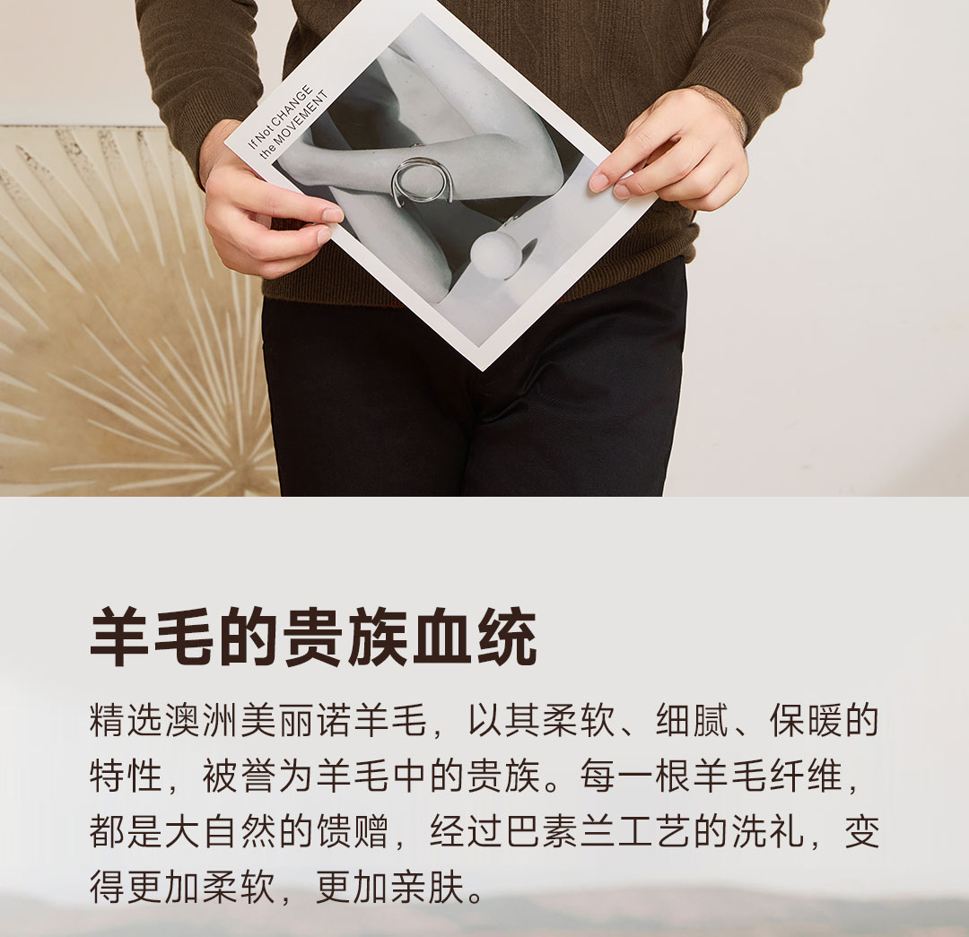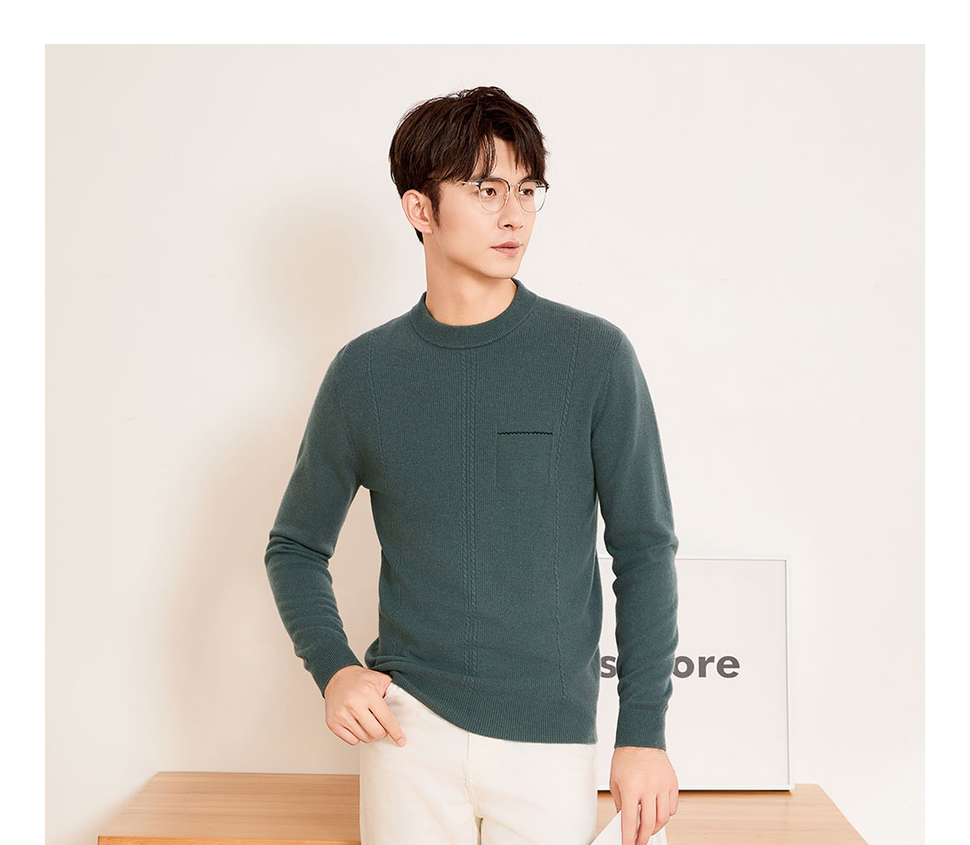 PROEASE美丽诺男士提花圆领羊毛衫 M 8405-古铜