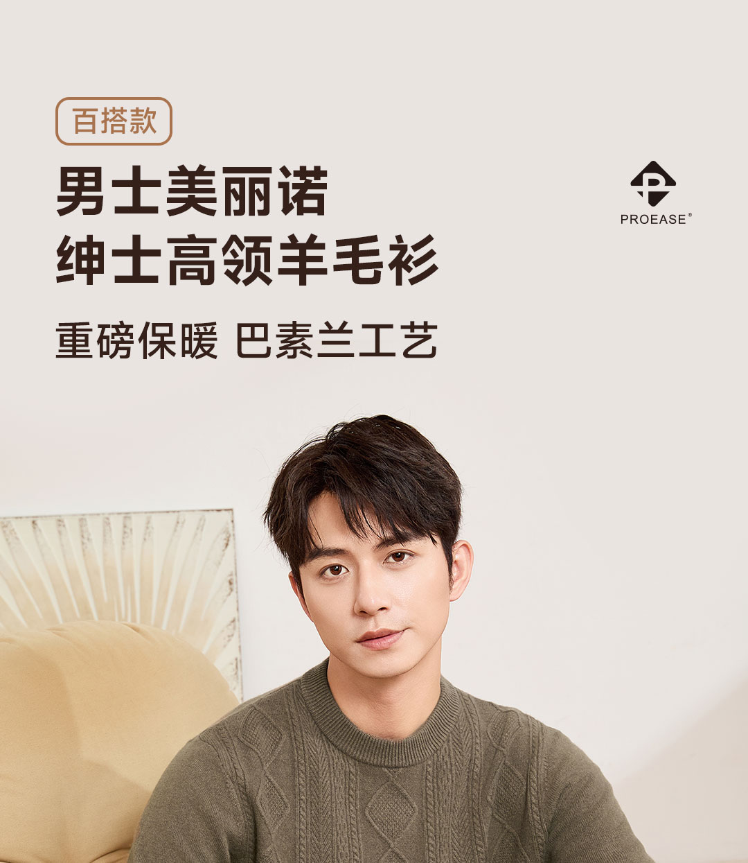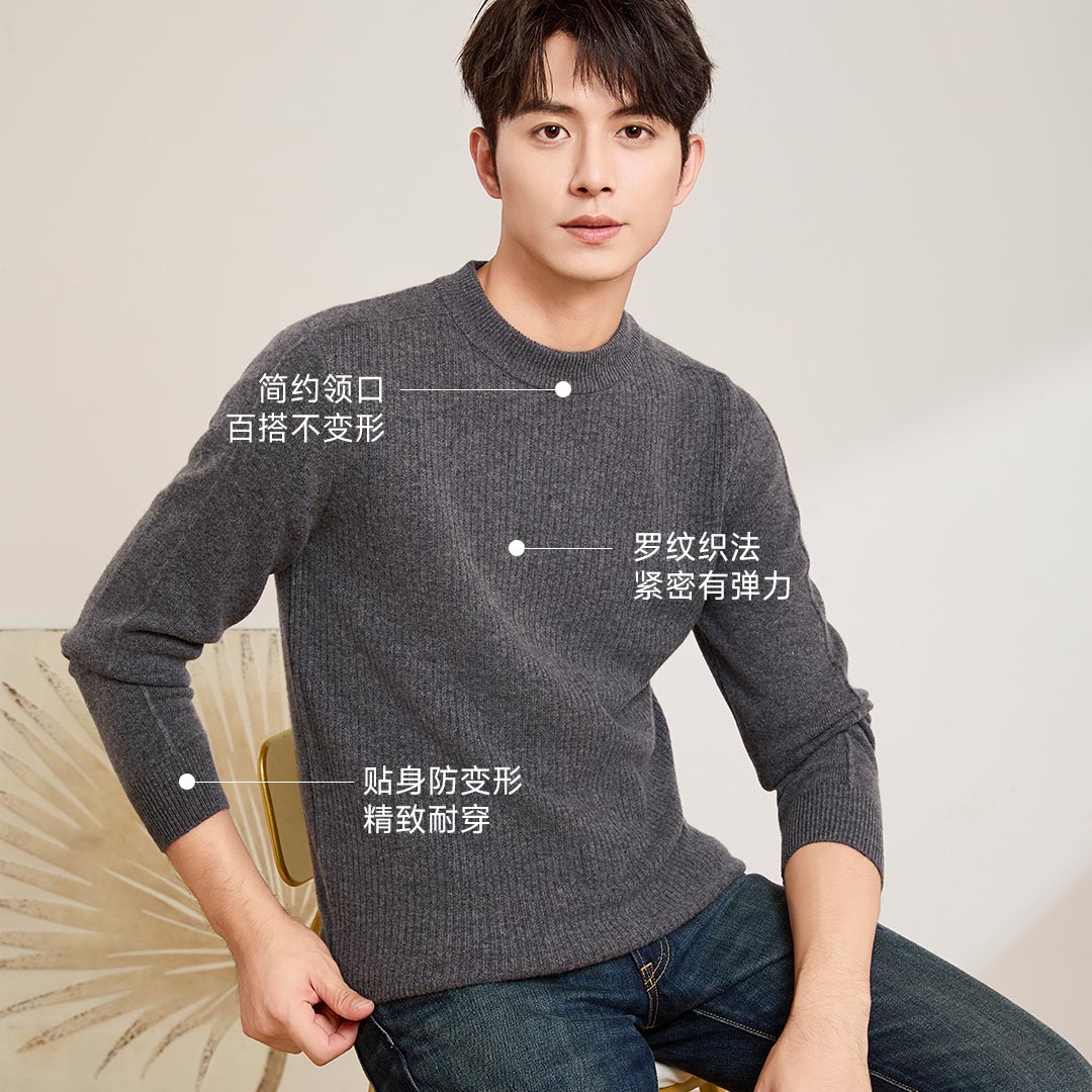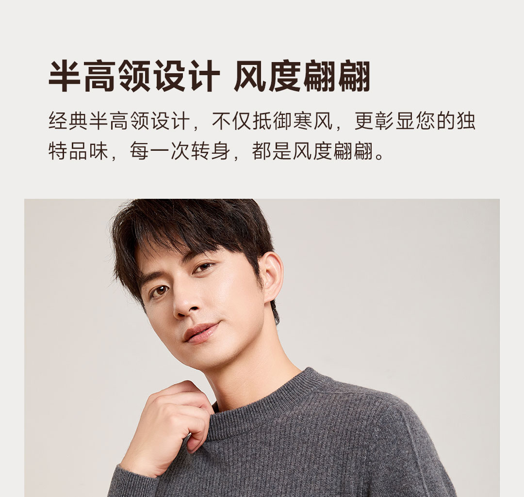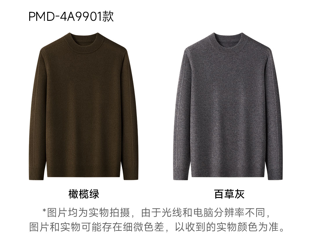 PROEASE男士美丽诺绅士高领羊毛衫 M 9901-百草灰