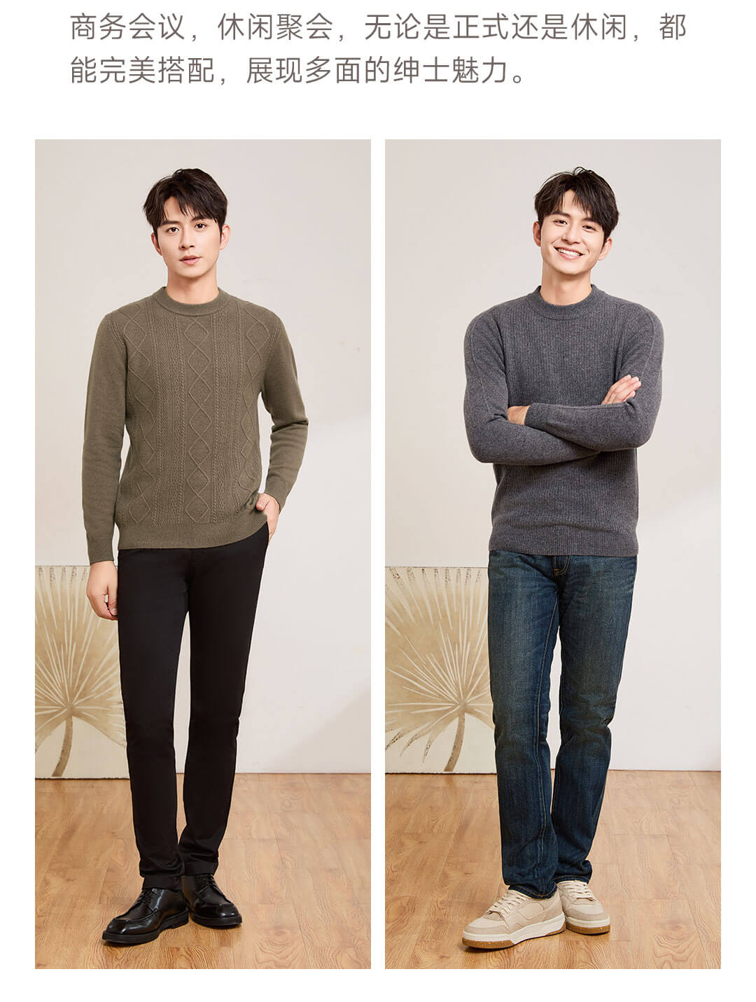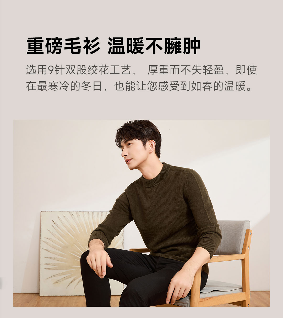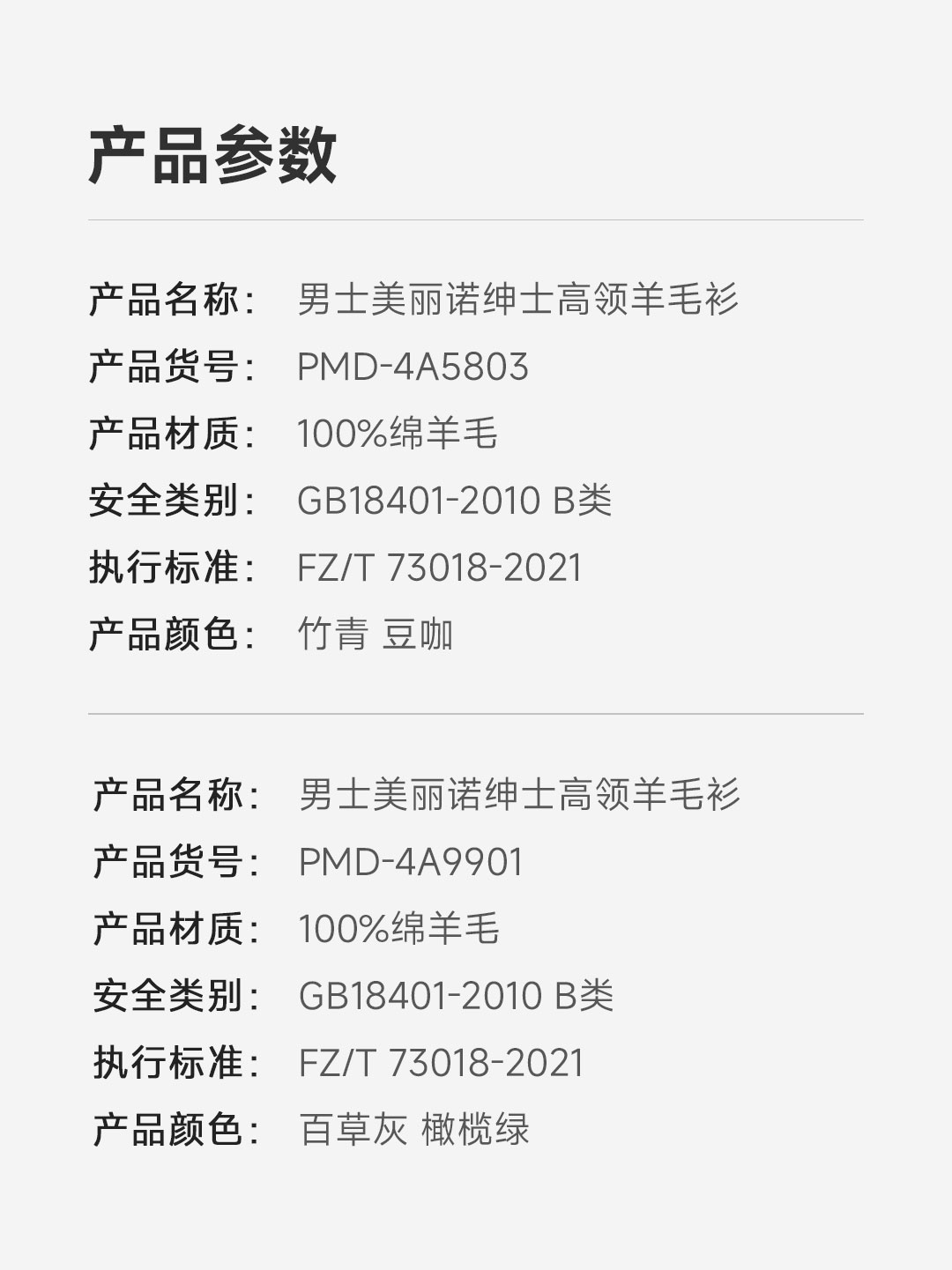 PROEASE男士美丽诺绅士高领羊毛衫 M 9901-百草灰