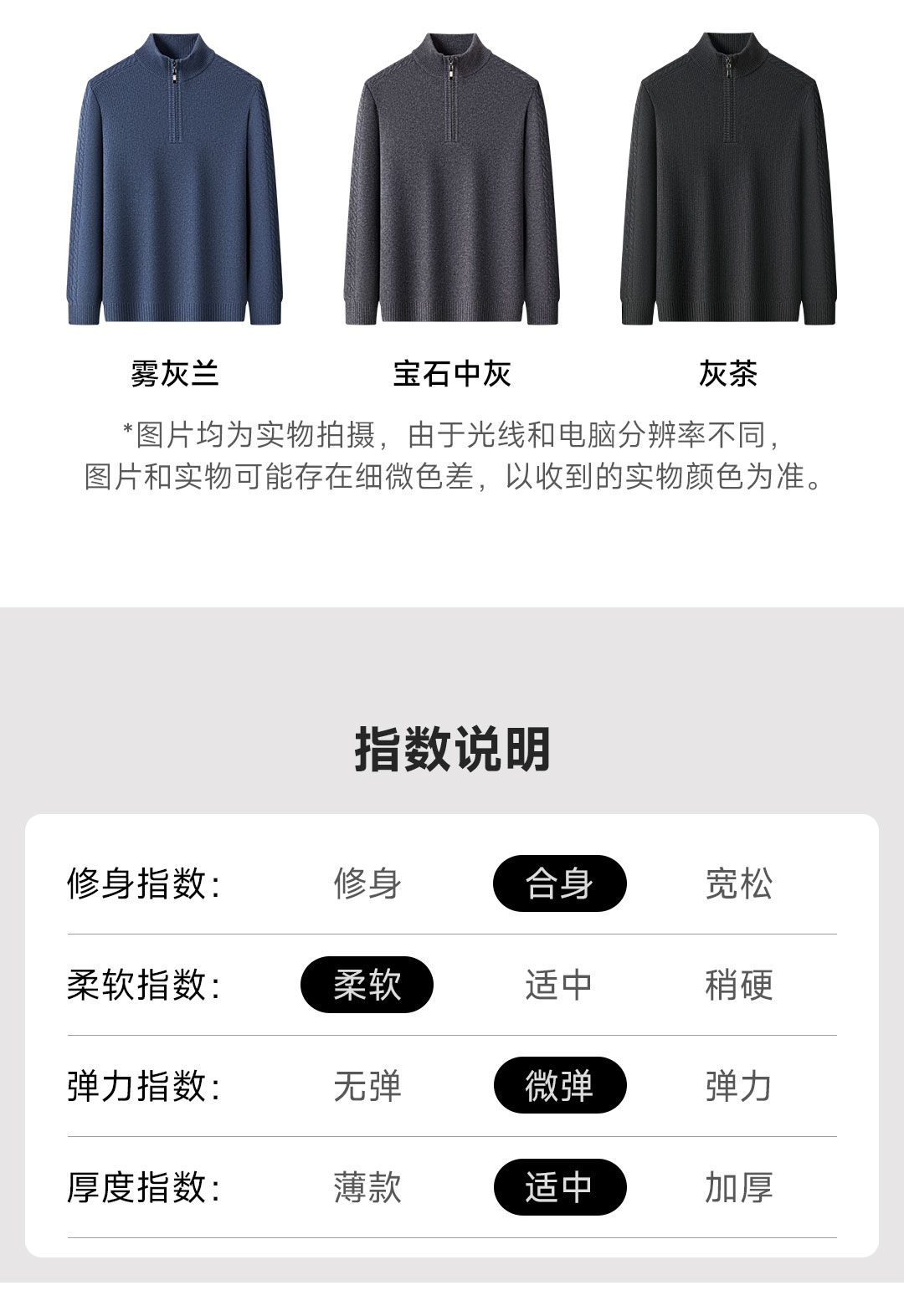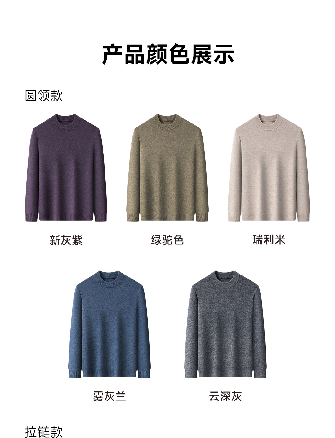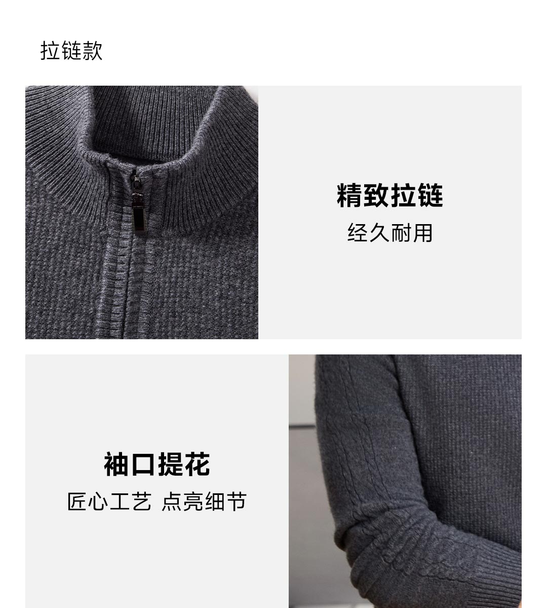 Proease羊毛羊绒混纺男士针织衫 XL 拉链款雾灰兰