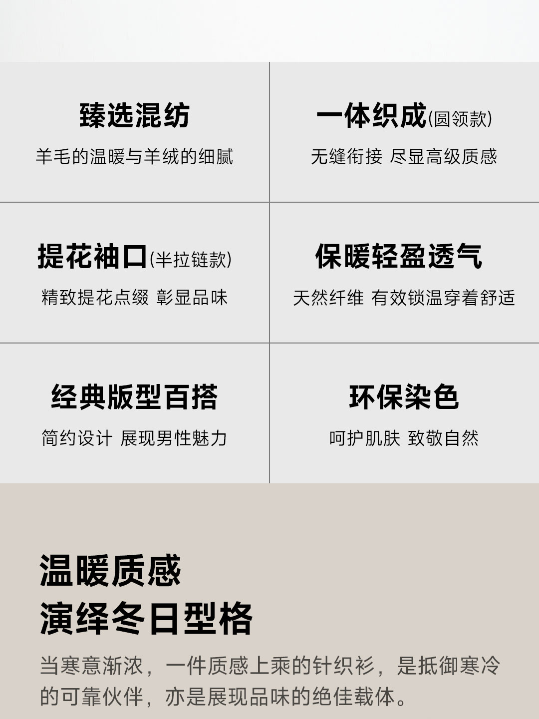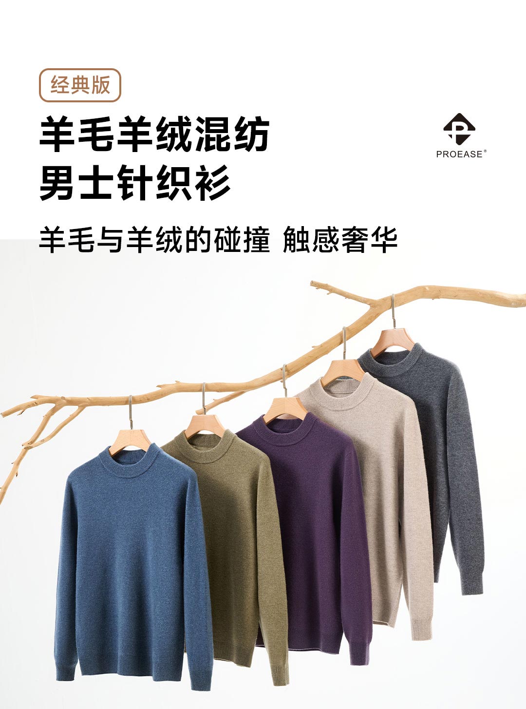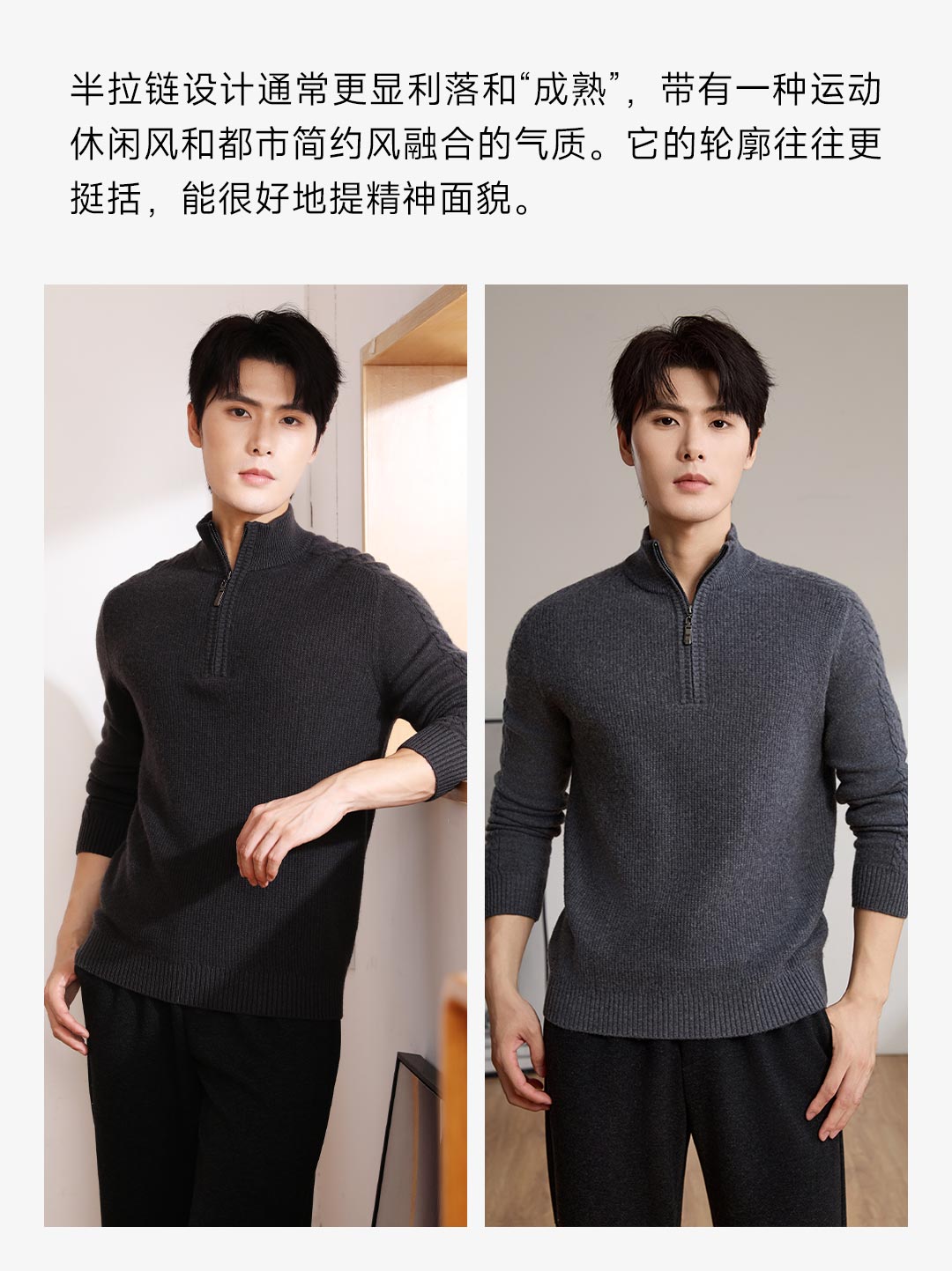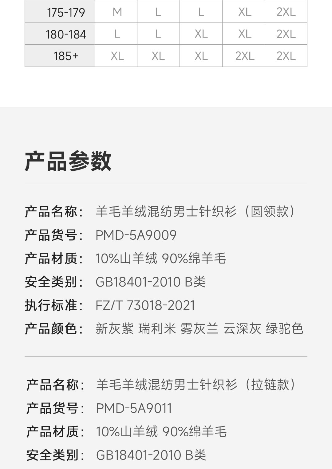 Proease羊毛羊绒混纺男士针织衫 XL 拉链款雾灰兰