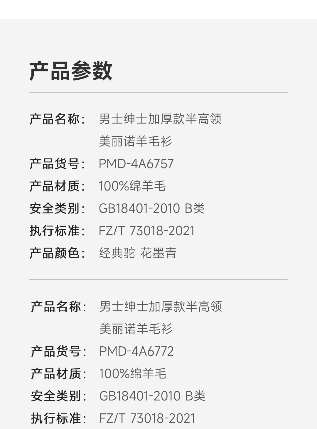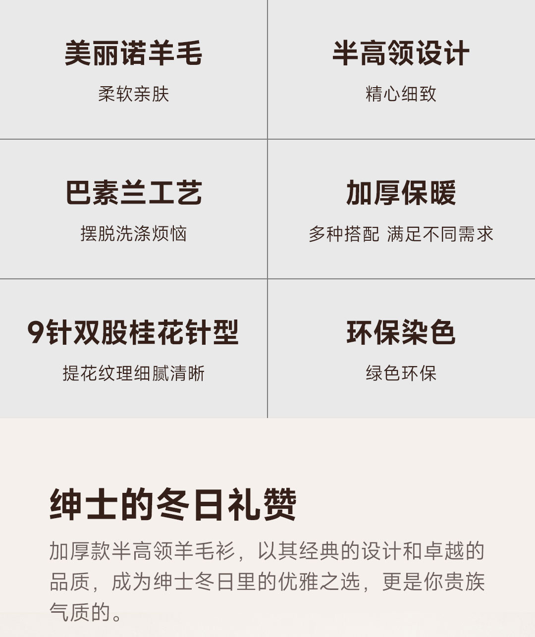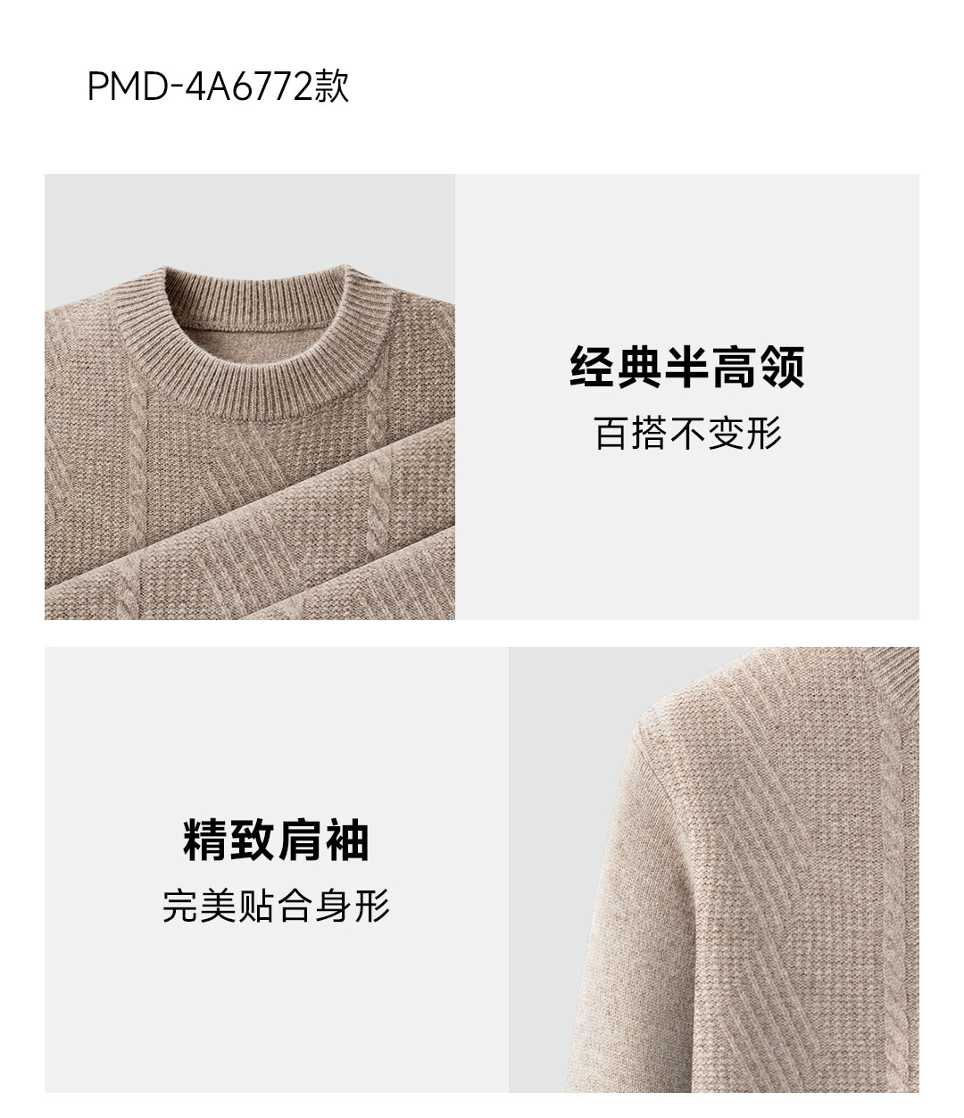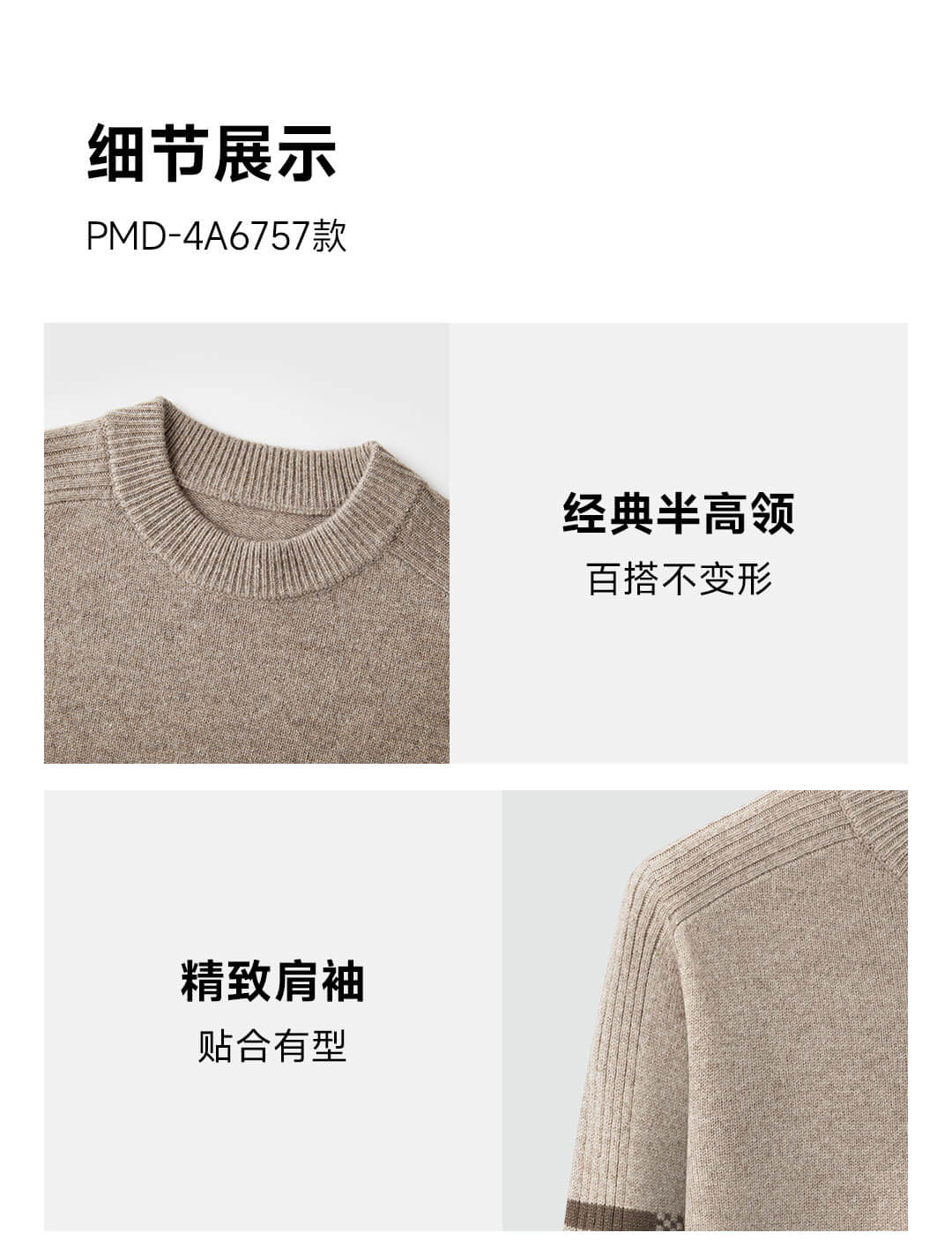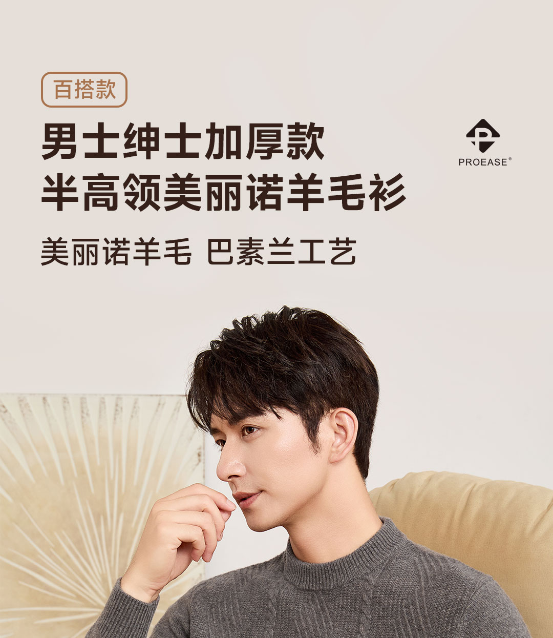 PROEASE男士绅士加厚款半高领美丽诺羊毛衫 XL 6757-经典驼