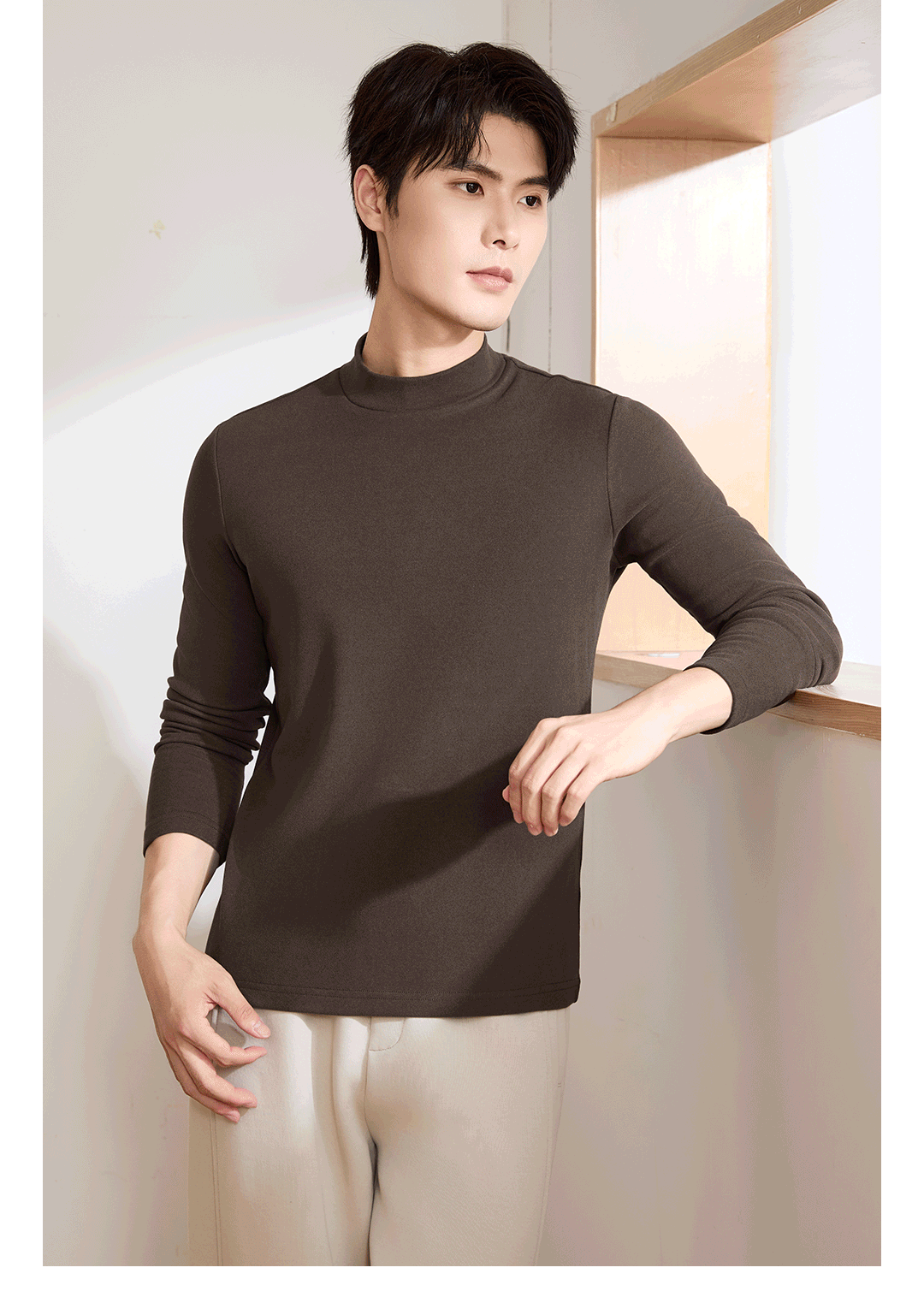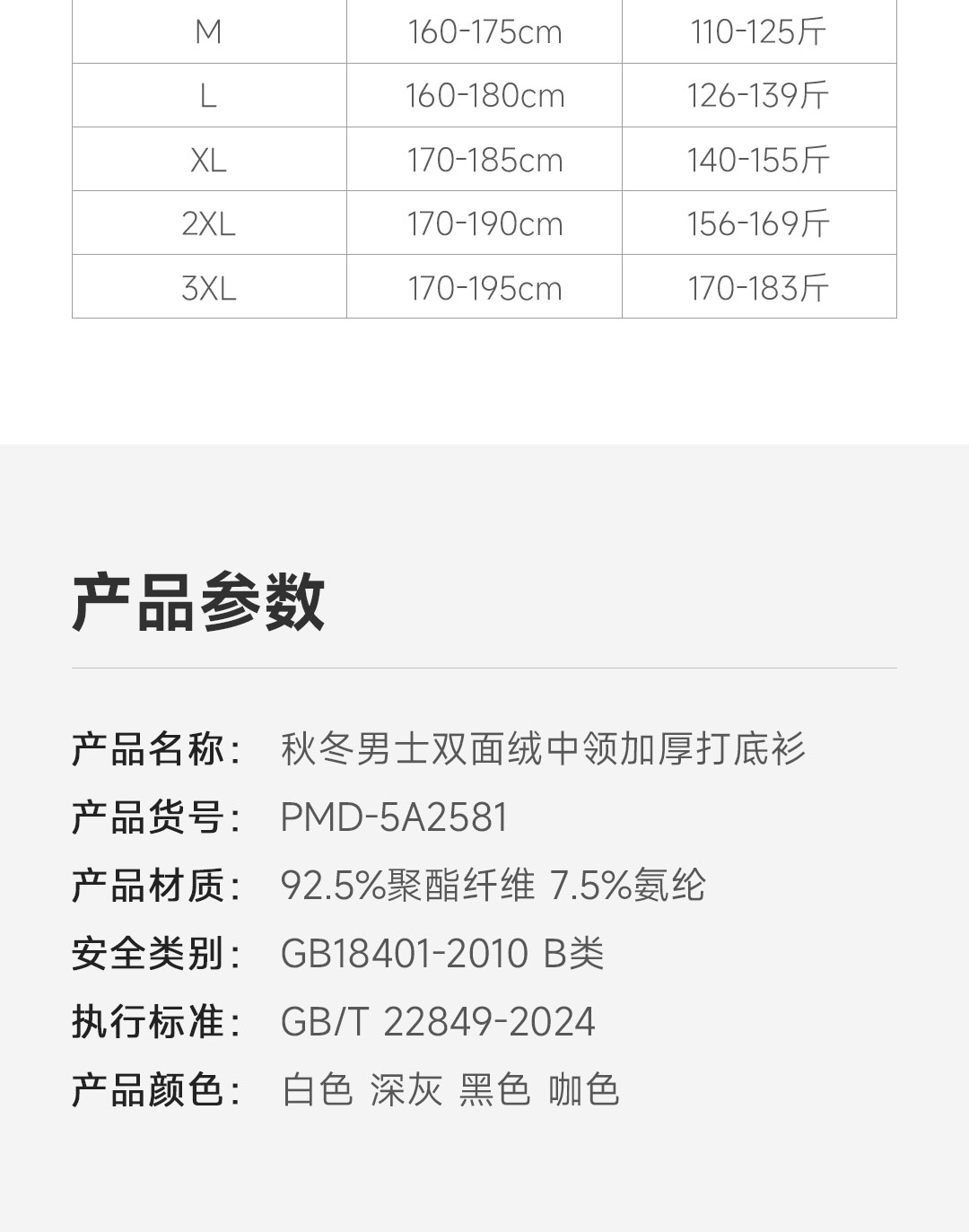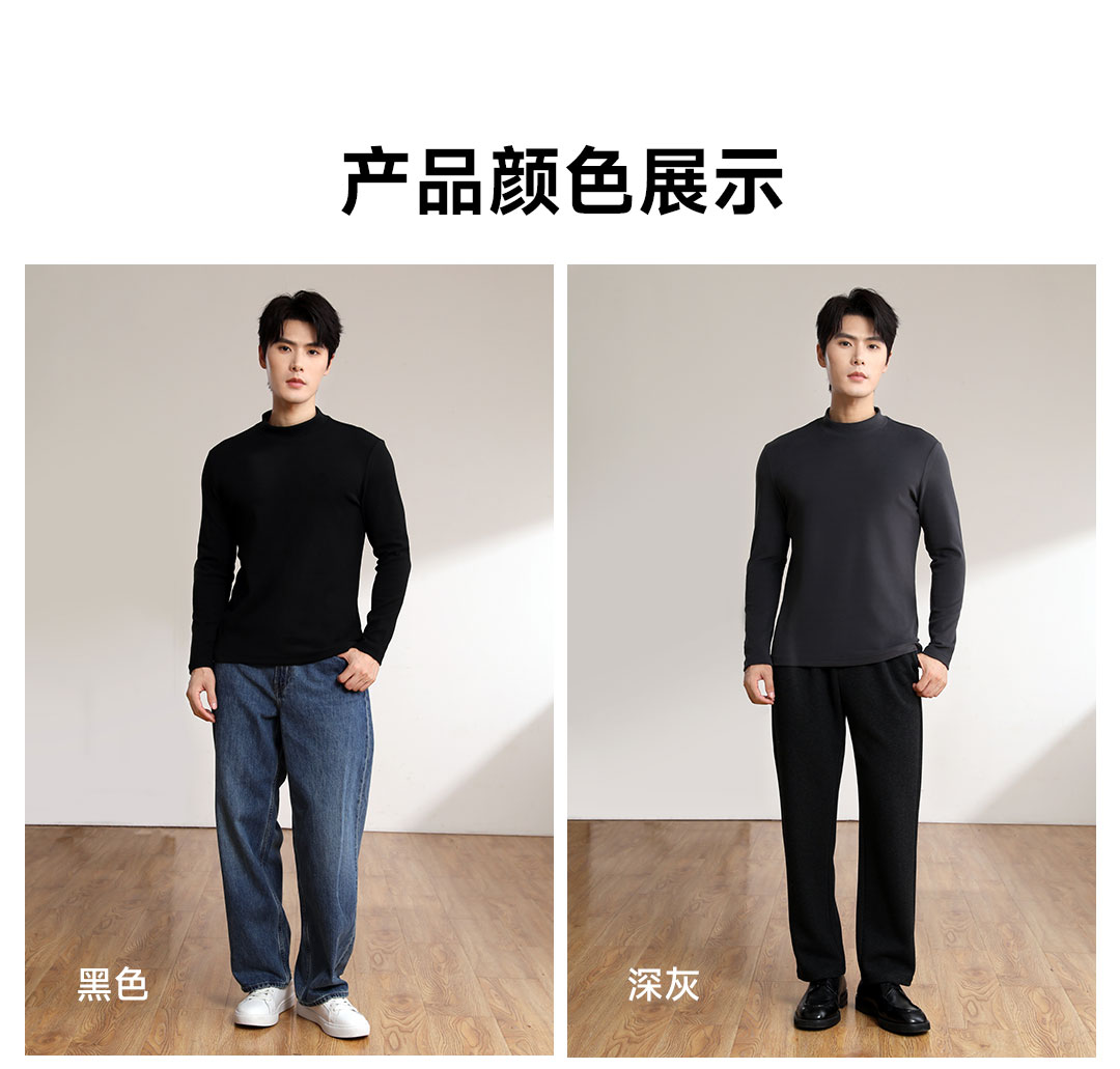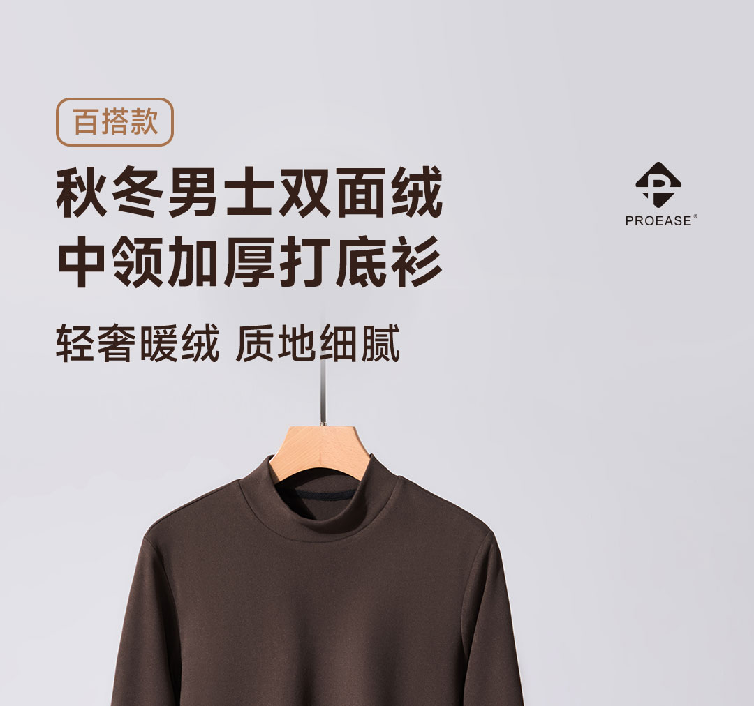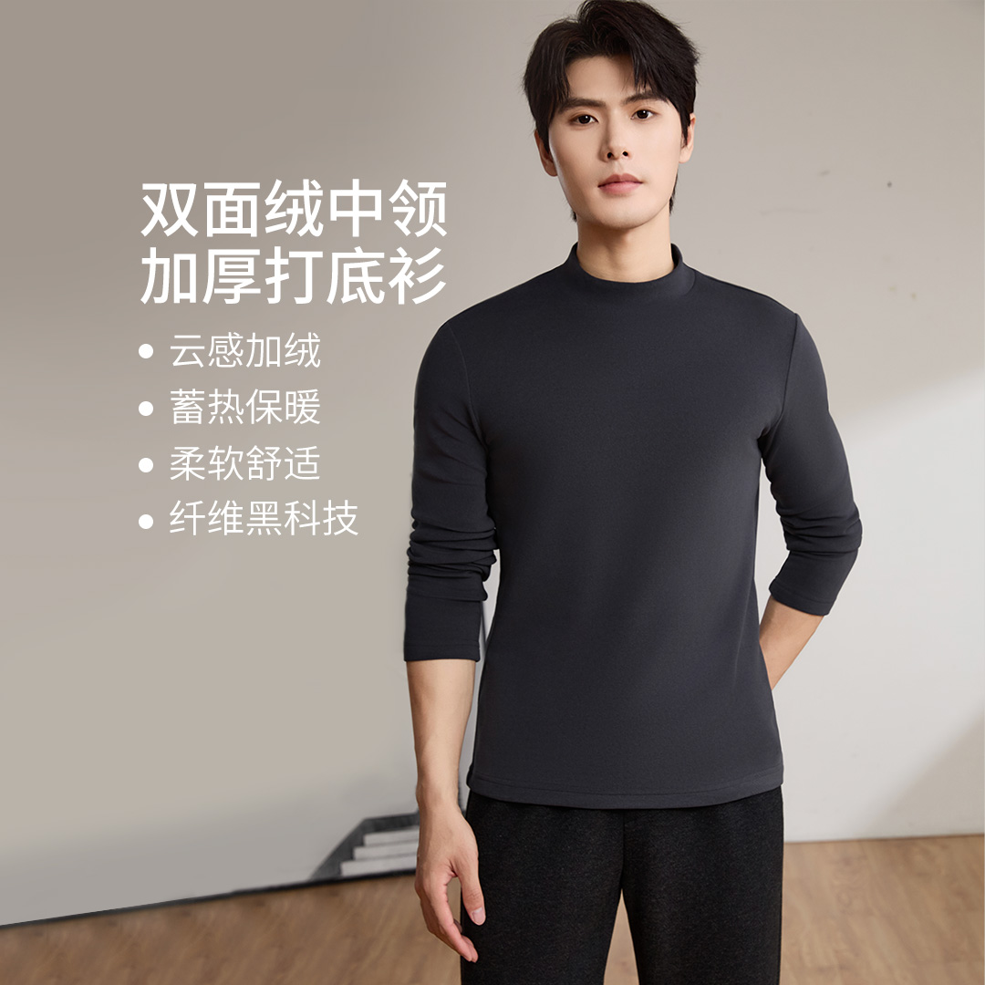Proease秋冬男士双面绒中领加厚打底衫 M 深灰