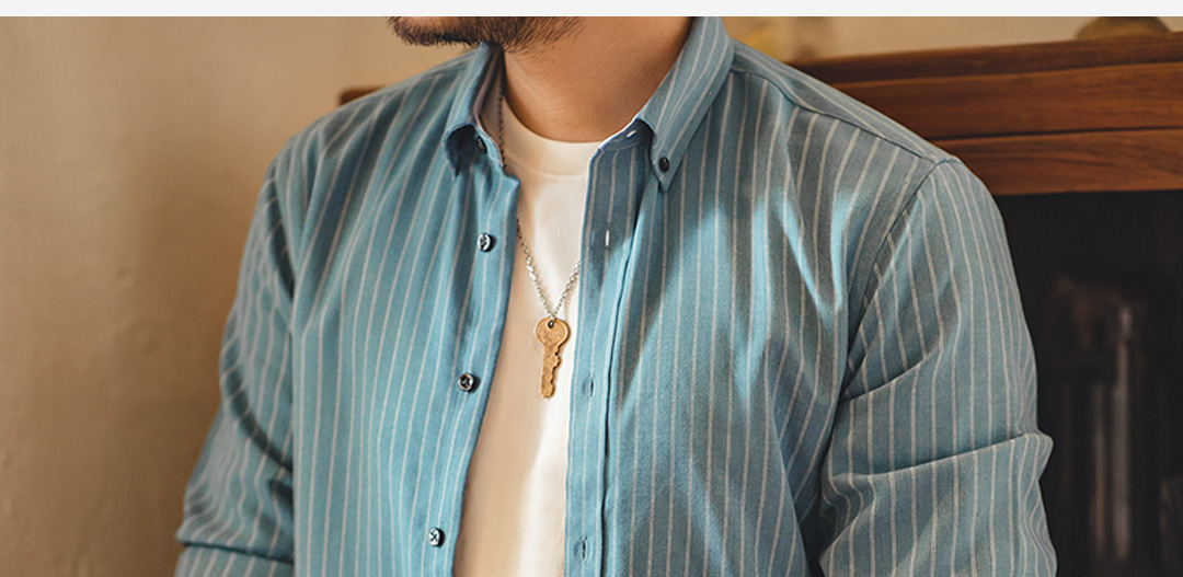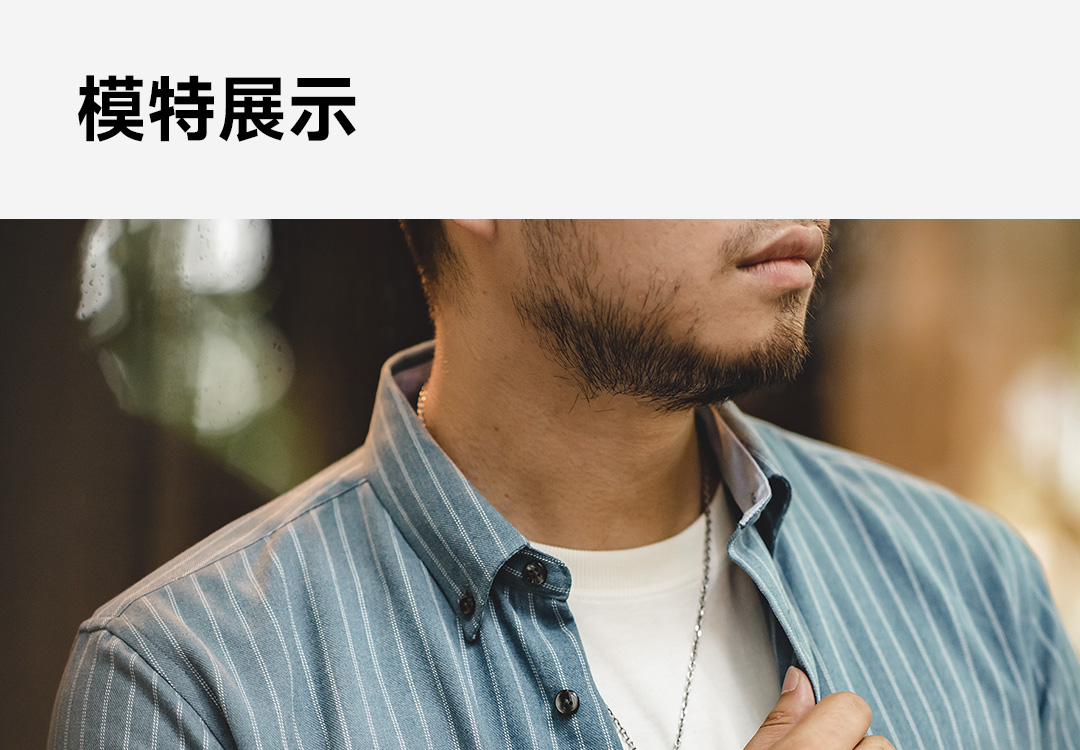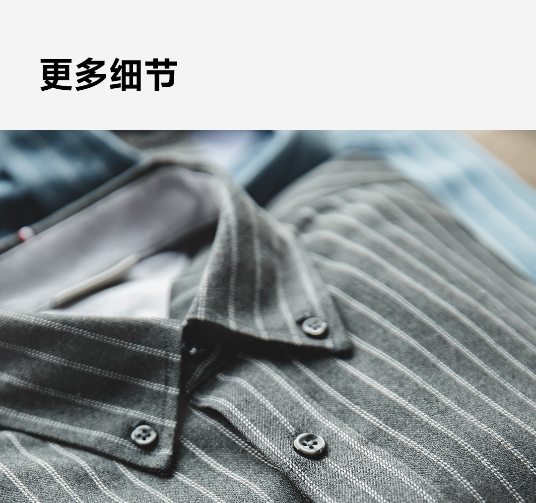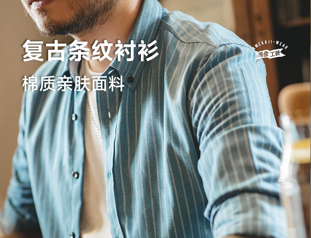 美式复古磨毛阿美咔叽竖条纹长袖衬衫休闲衬衣男春 S 古蓝色