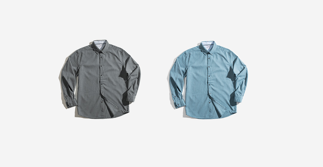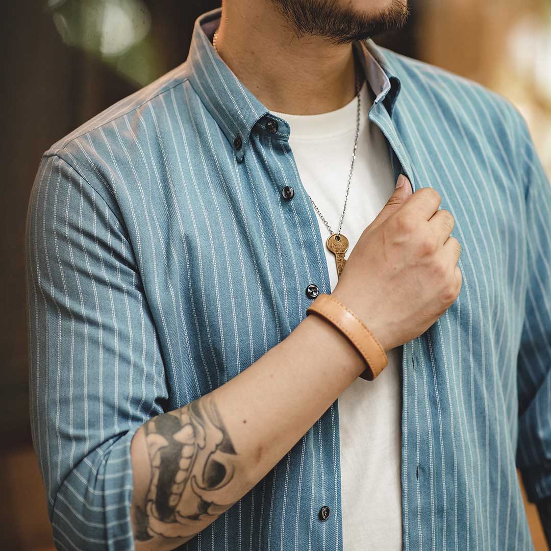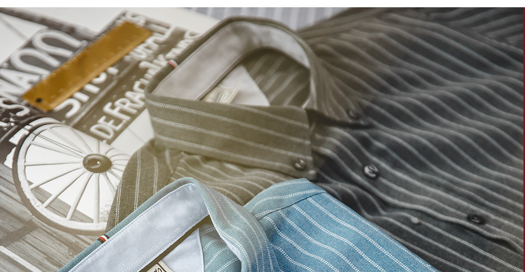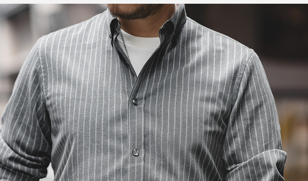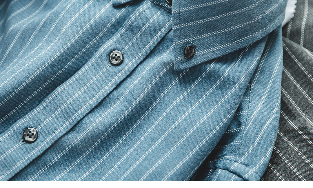 美式复古磨毛阿美咔叽竖条纹长袖衬衫休闲衬衣男春 S 古蓝色