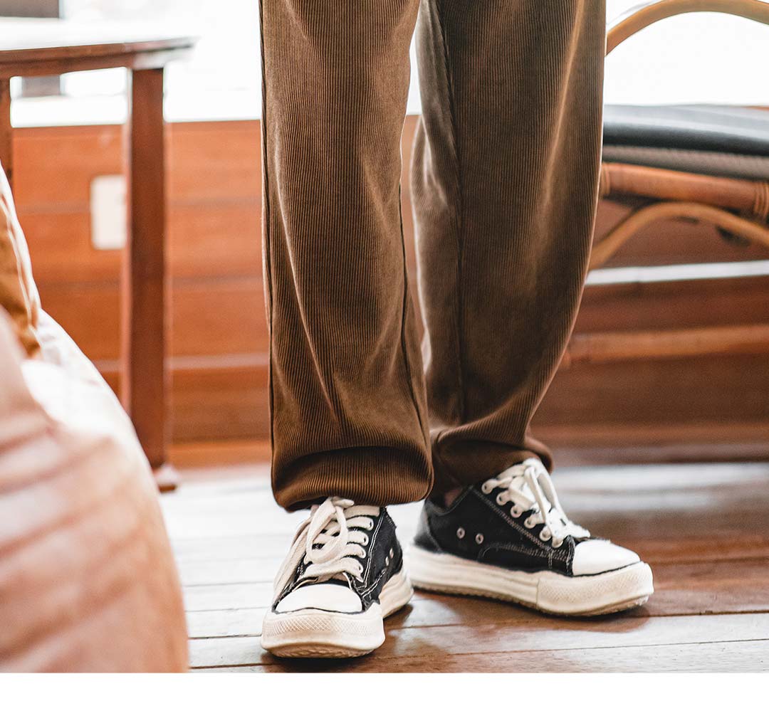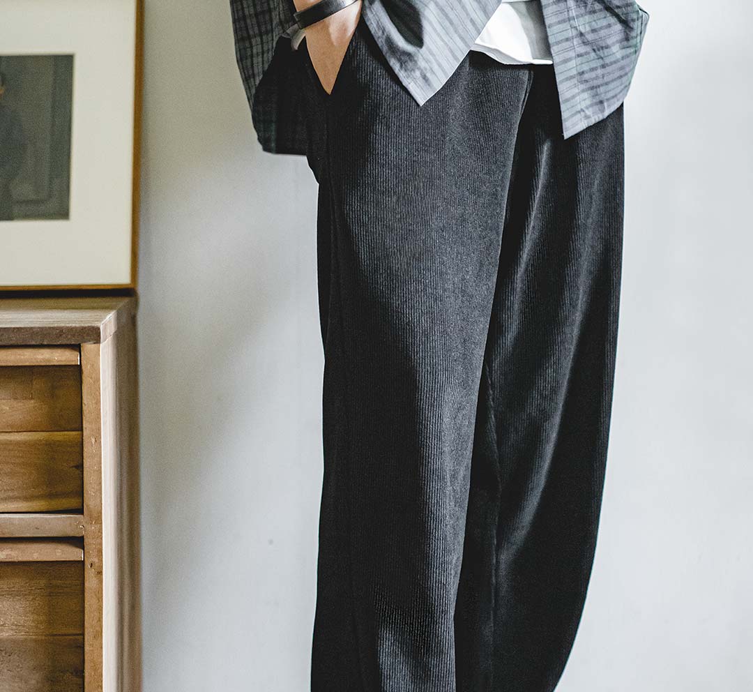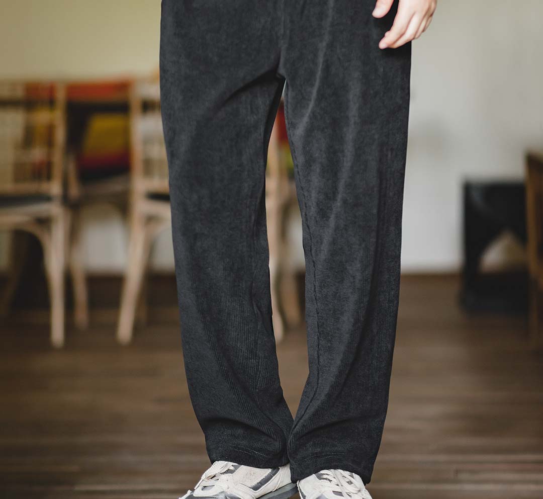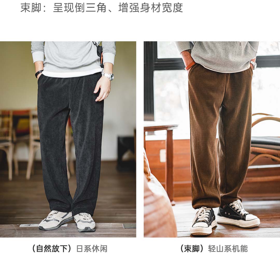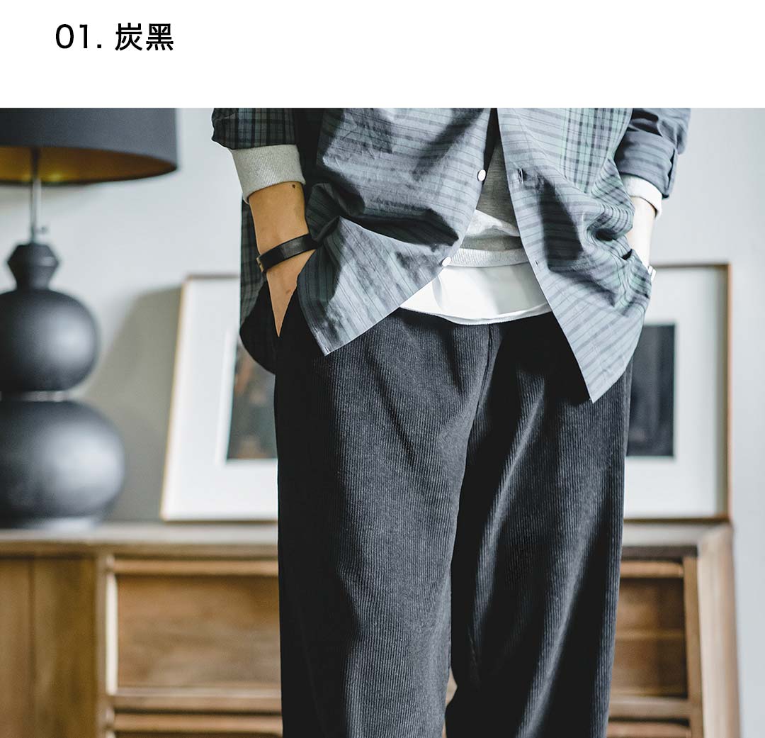 马登工装美式休闲雪尼尔垂感聪明长裤直筒仿灯芯绒美拉德裤子男秋 炭黑色 S