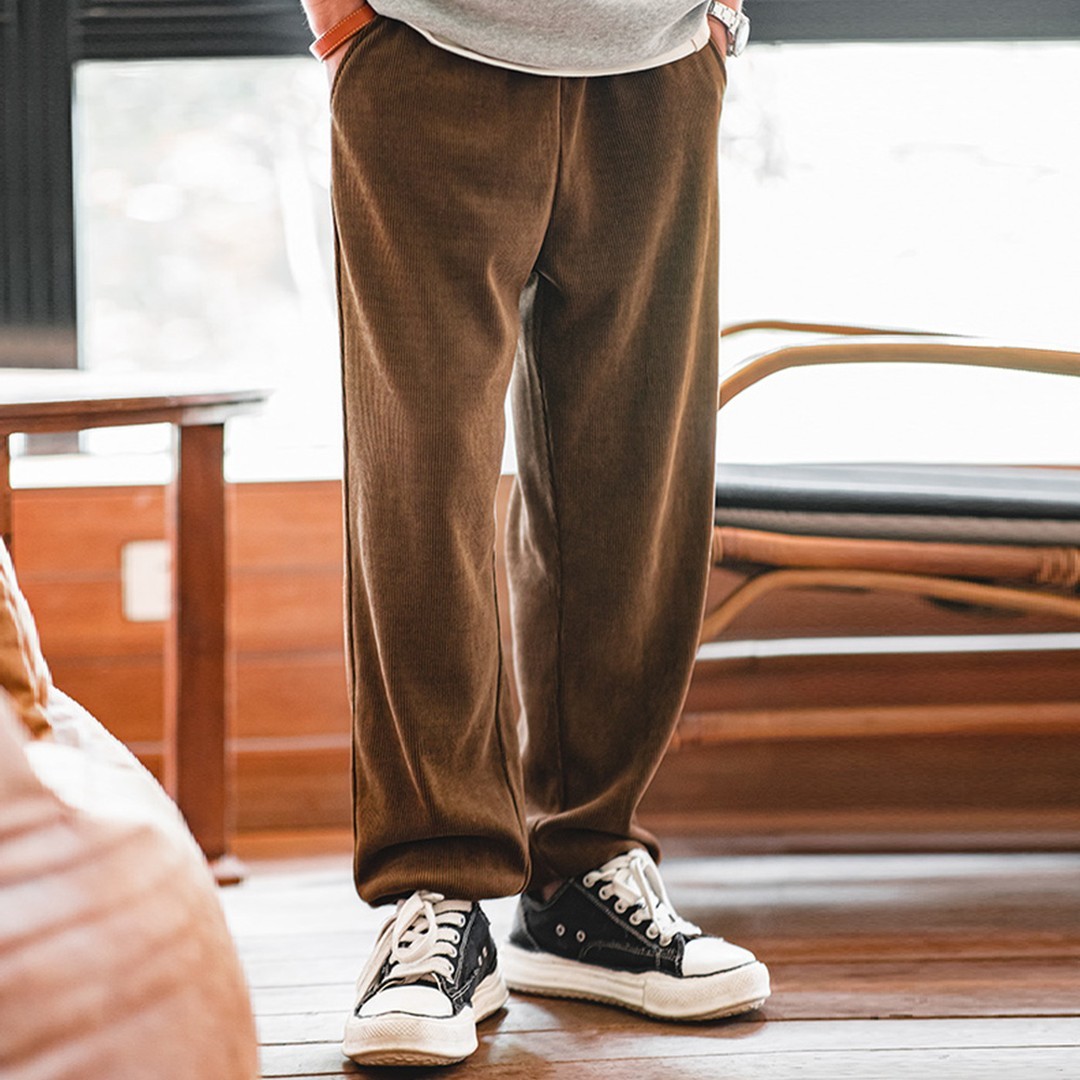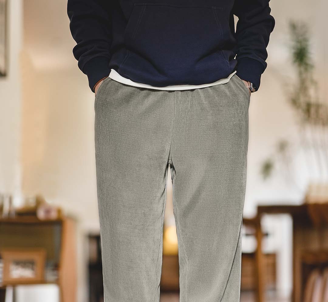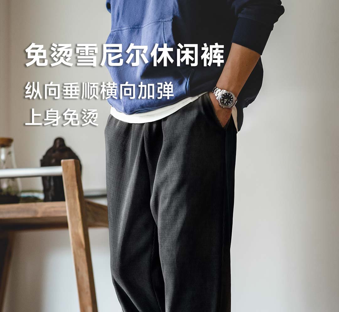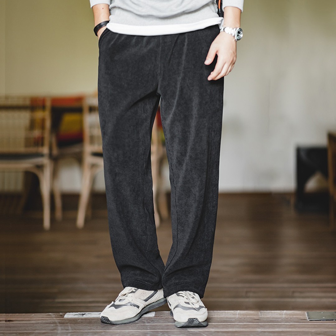 马登工装美式休闲雪尼尔垂感聪明长裤直筒仿灯芯绒美拉德裤子男秋 炭黑色 S