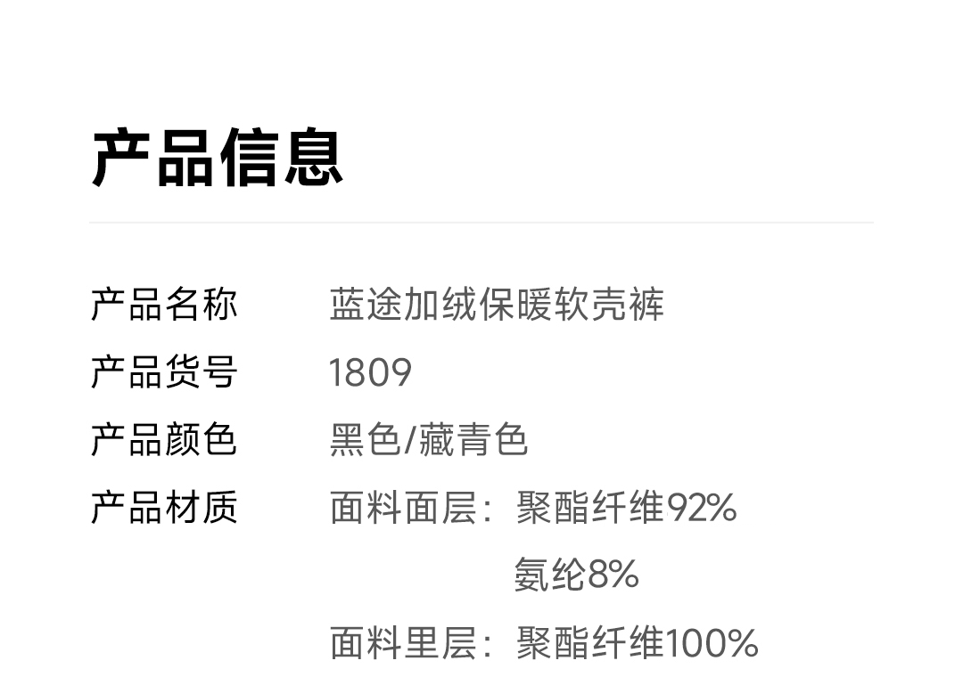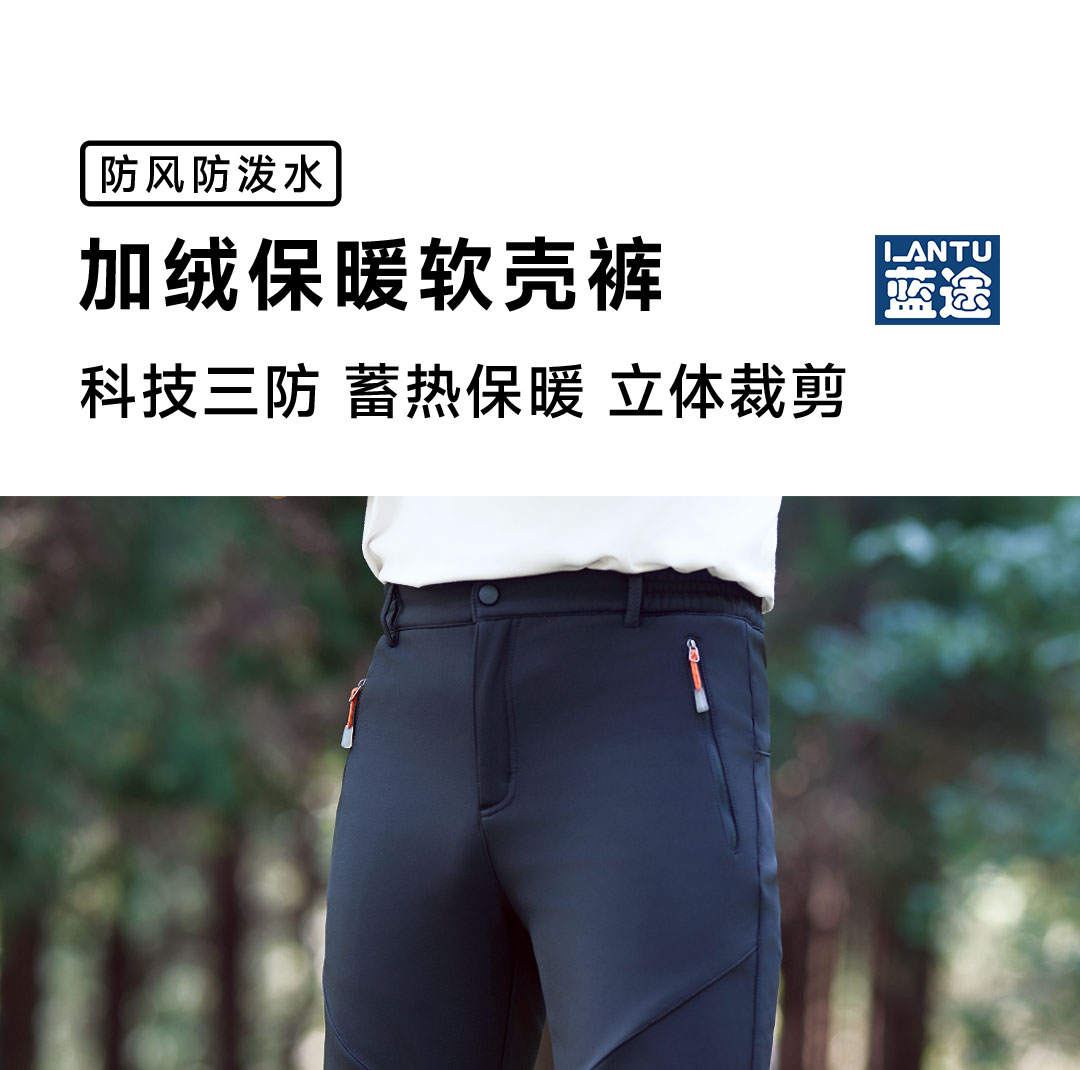 蓝途 防风防泼水加绒保暖软壳裤1809 黑色 L