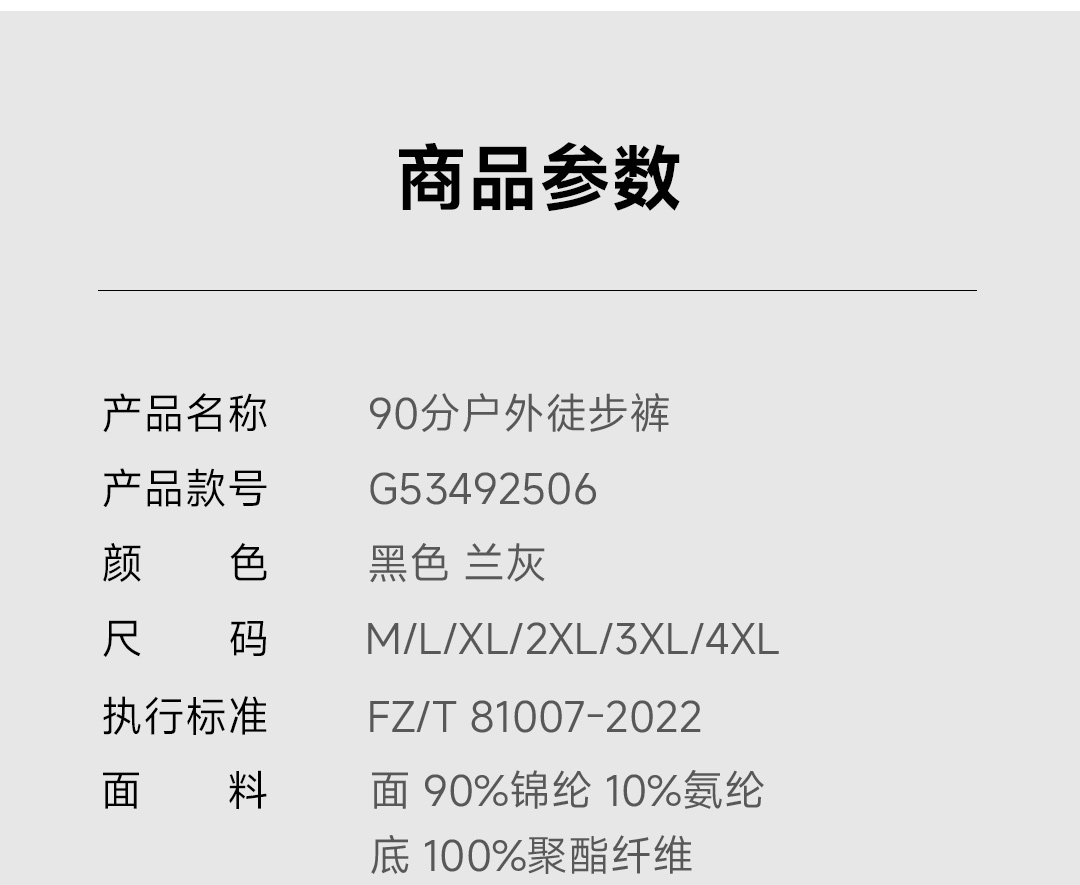 90分男装户外运动休闲百搭直筒长裤 黑色 M(170/76A)