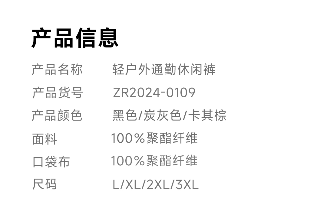 零界纤维 轻户外通勤休闲裤 黑色 L