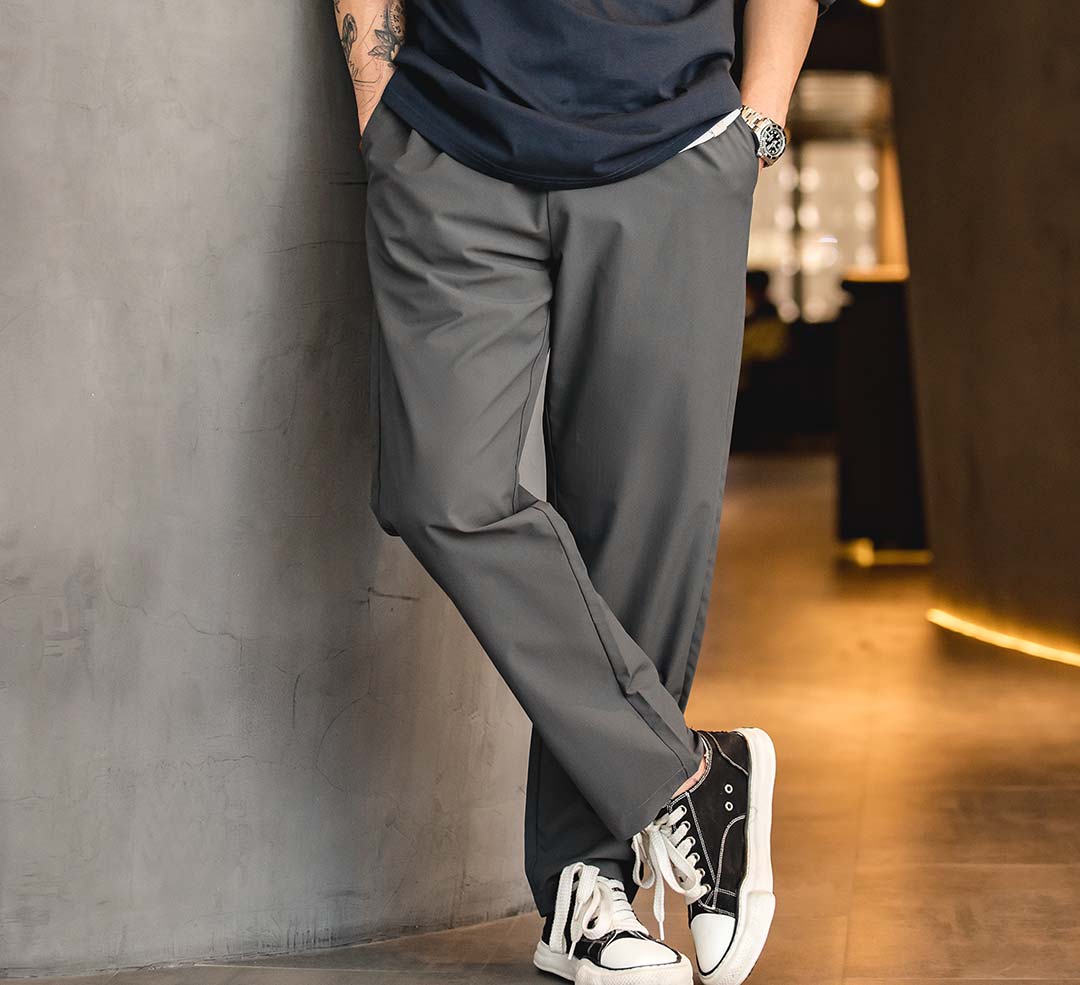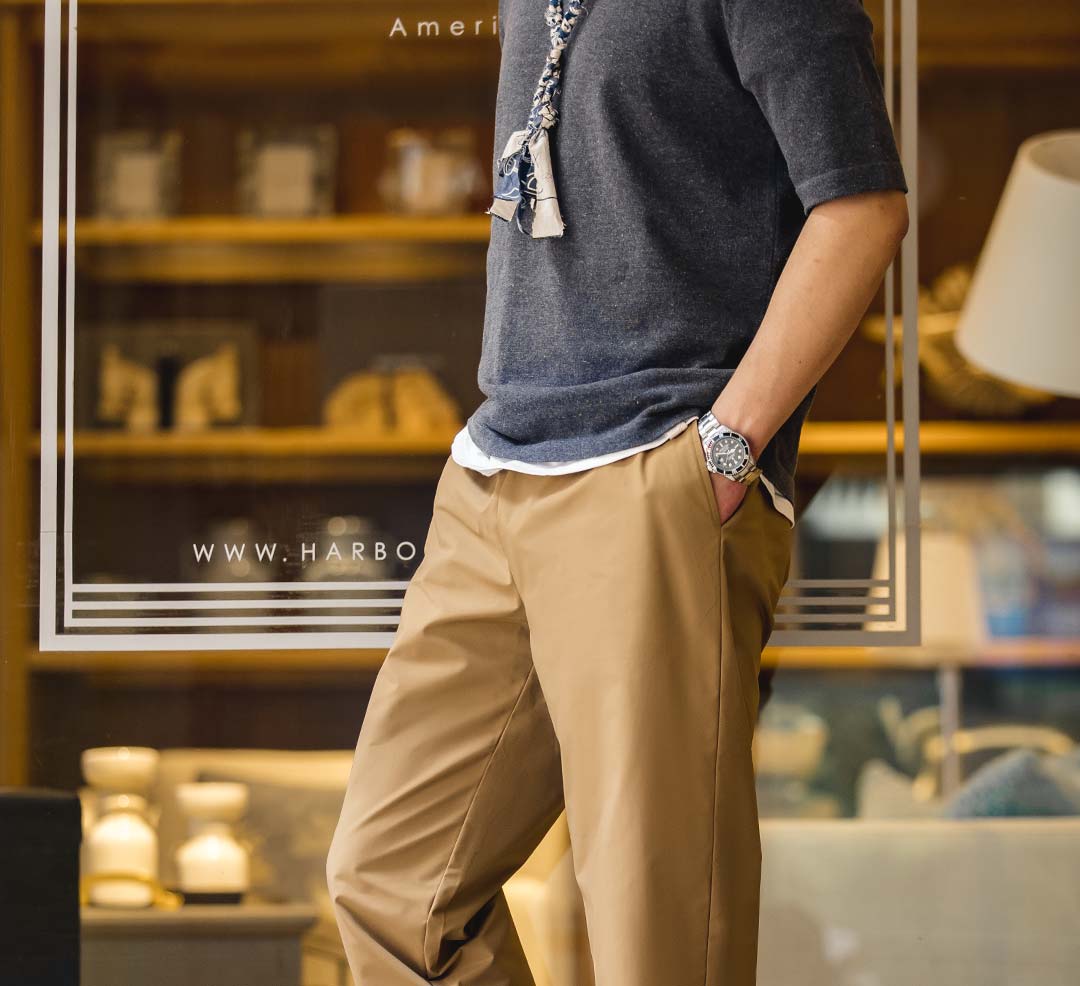 马登工装美式四面弹垂感抗皱休闲裤薄款直筒锥形西装长裤子男春 卡其色 S