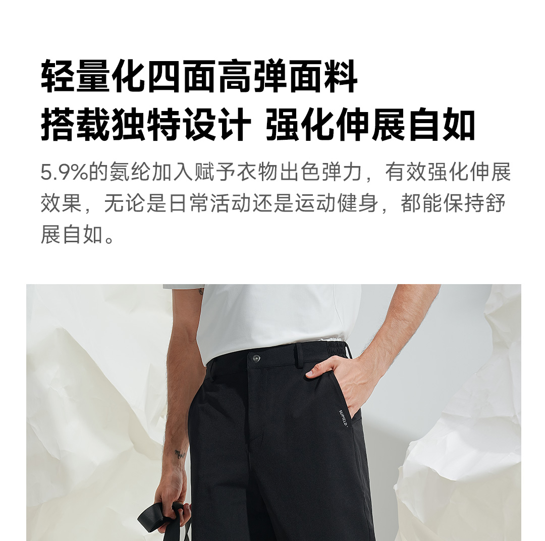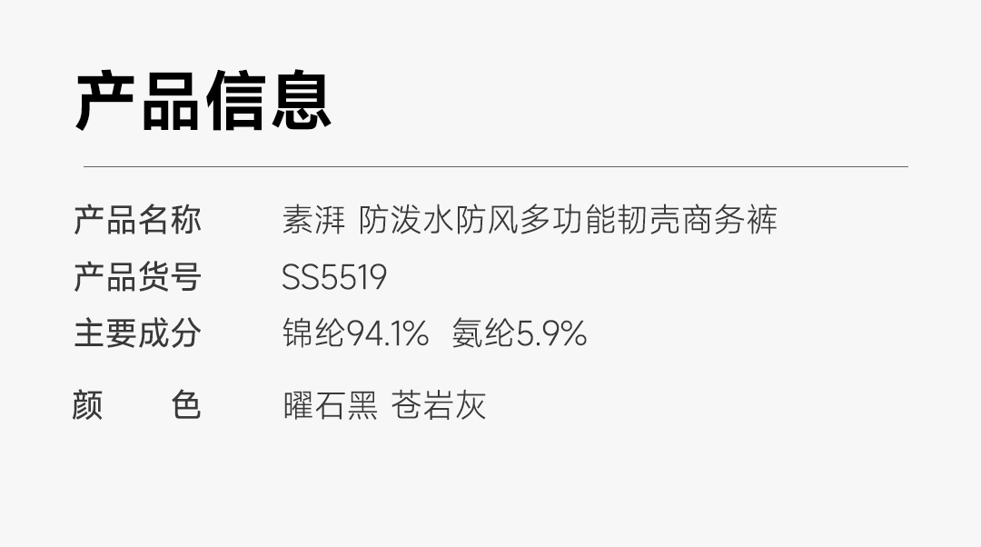 素湃 防泼水防风耐磨软壳商务直筒裤 曜石黑 M
