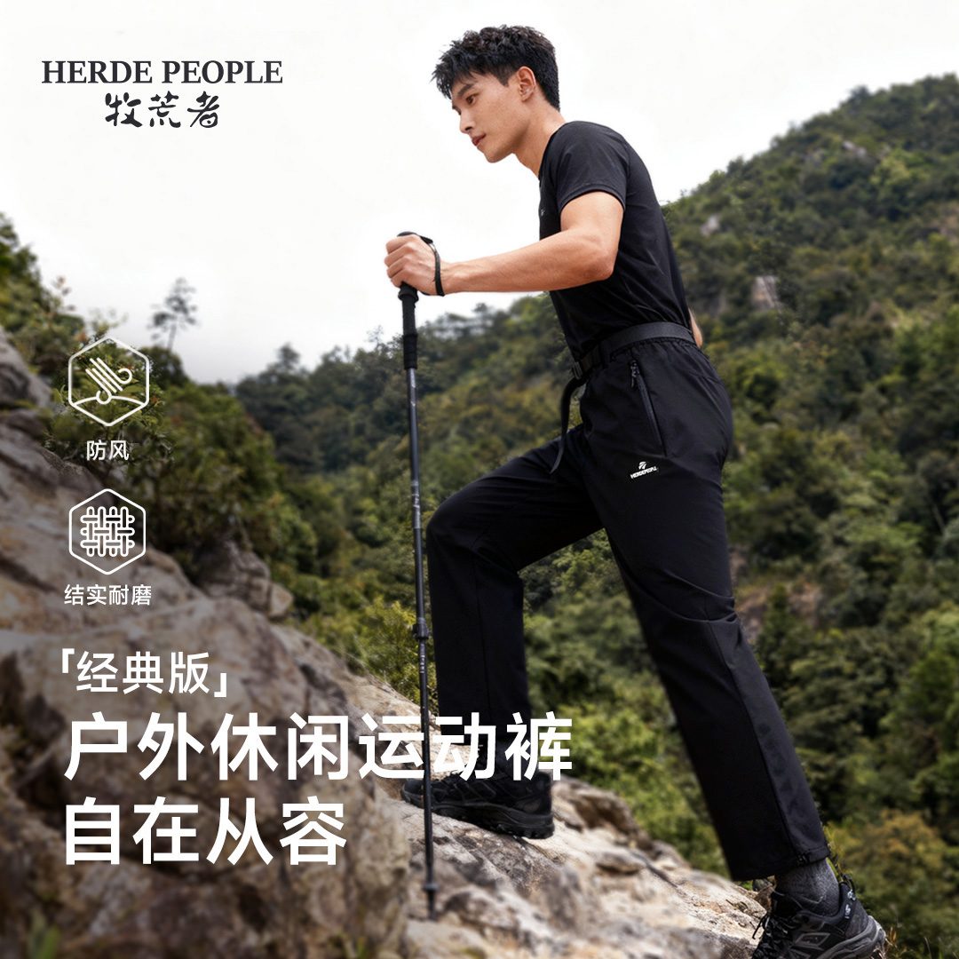 牧荒者户外运动防风保暖男女同款休闲长裤 黑色 S(80-110斤)