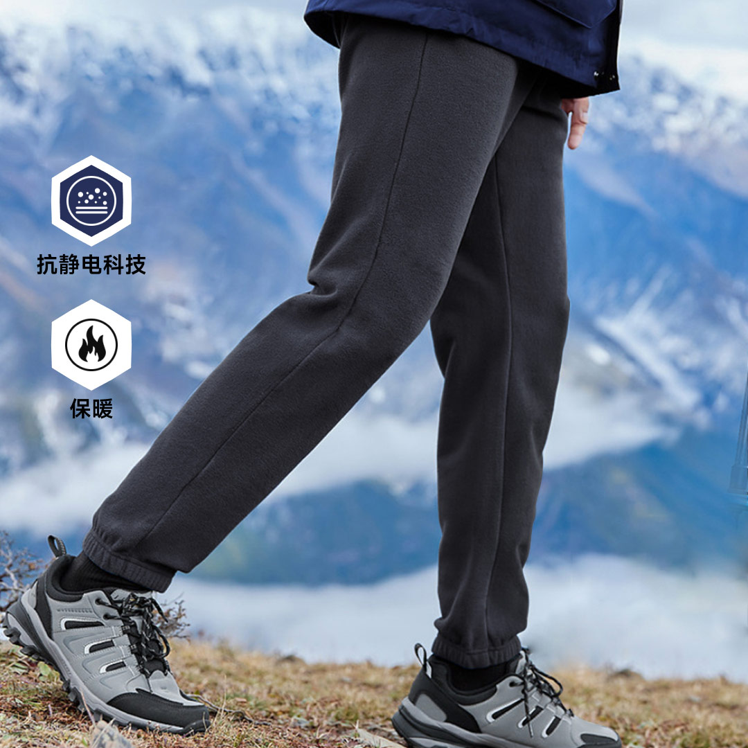 思凯乐户外抓绒裤秋冬保暖抗静电摇粒绒抓绒裤 男-深灰-束脚 L