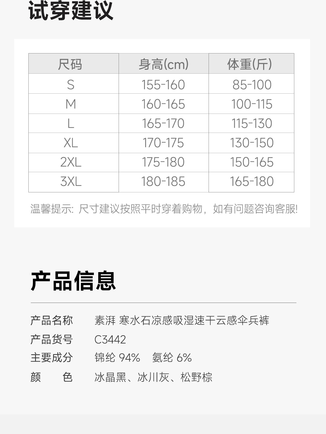 素湃 云感超轻抗菌吸湿速干伞兵裤 冰晶黑-男女同款 S(建议85-100斤左右)