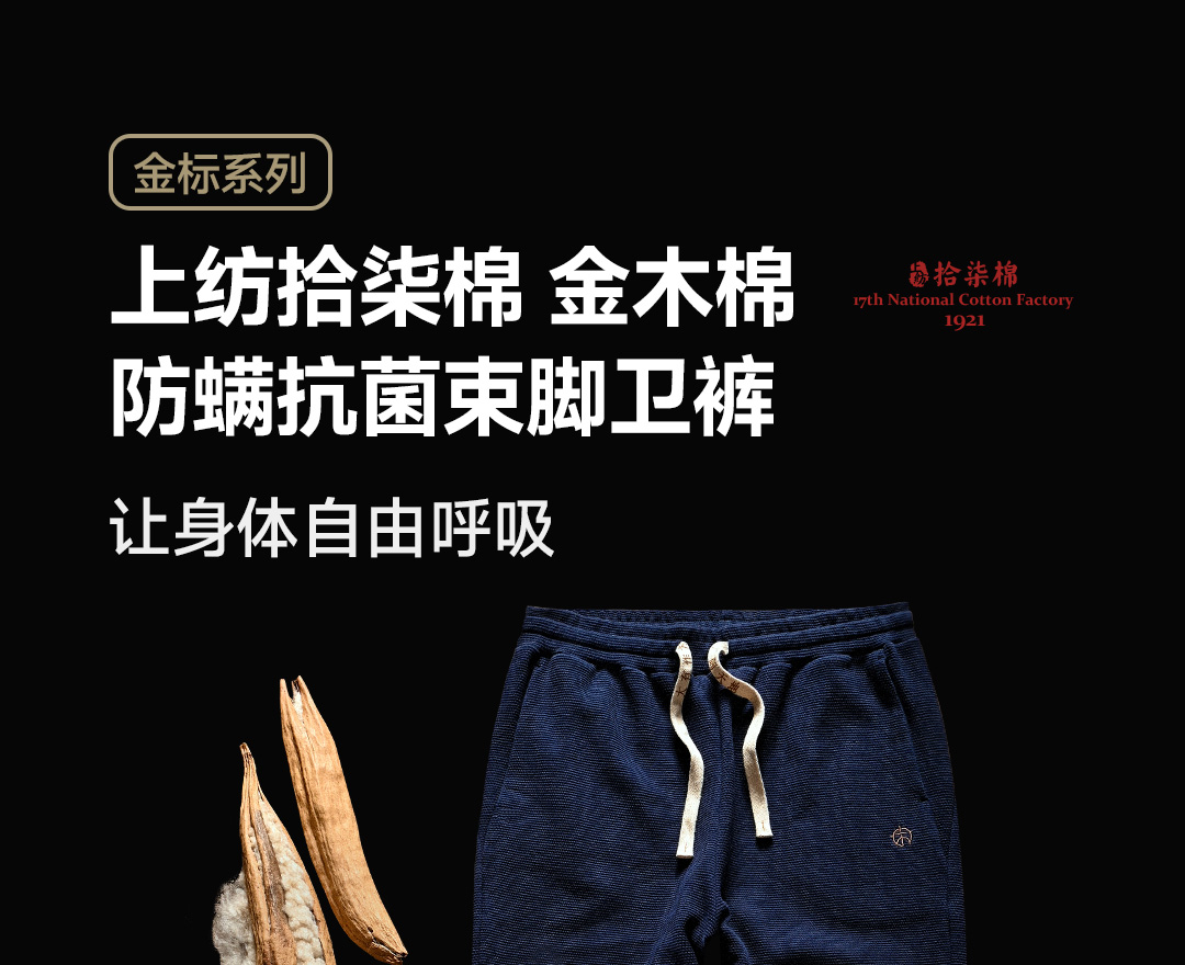 上纺拾柒棉 金木棉防螨抗菌休闲卫裤 深蓼蓝 M