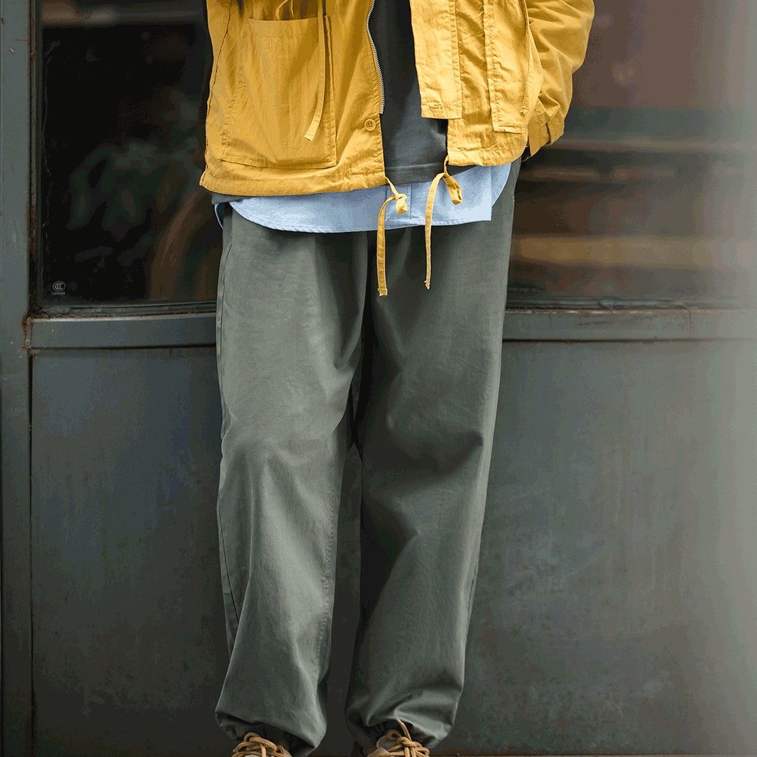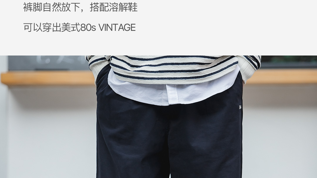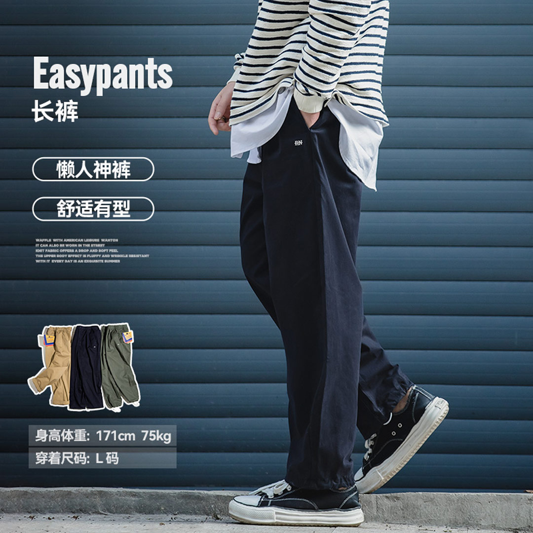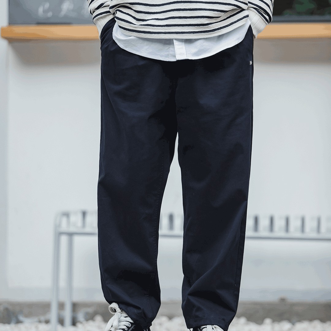 柔软舒适直筒可调节抽绳裤脚经典复古四季款质感休闲裤长裤男 藏蓝色 S(100-130斤)