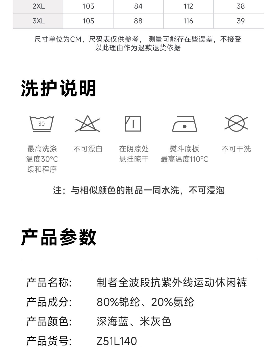 【夏上新】制者 UPF300+高倍防晒凉感透气抗菌夏季长裤 深海蓝 M