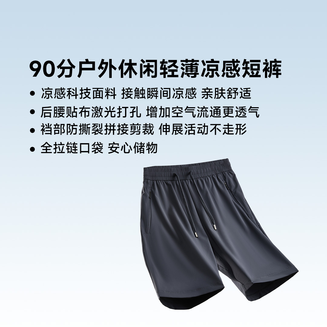 90分轻薄凉感透气男士休闲短裤 M(165/72A适合40-50kg) 黑色