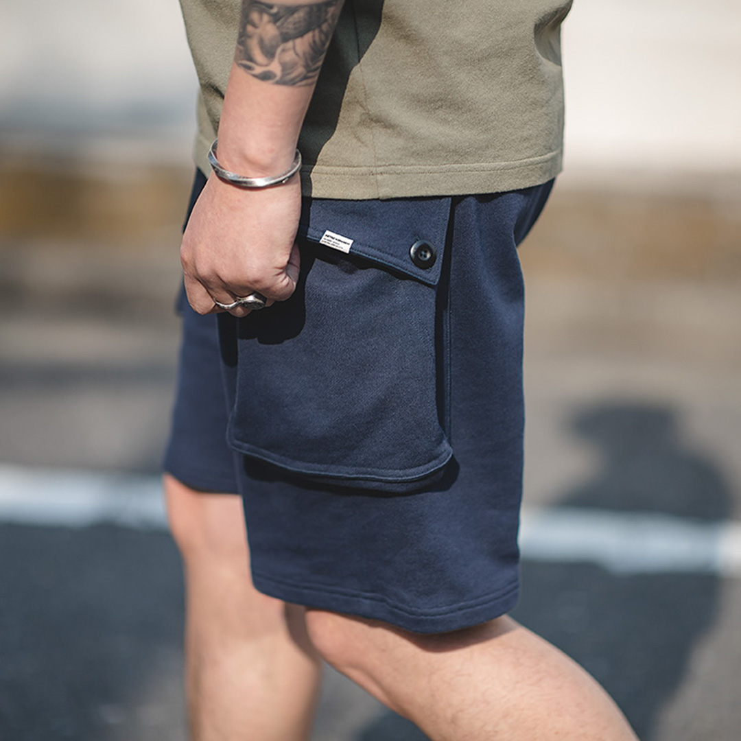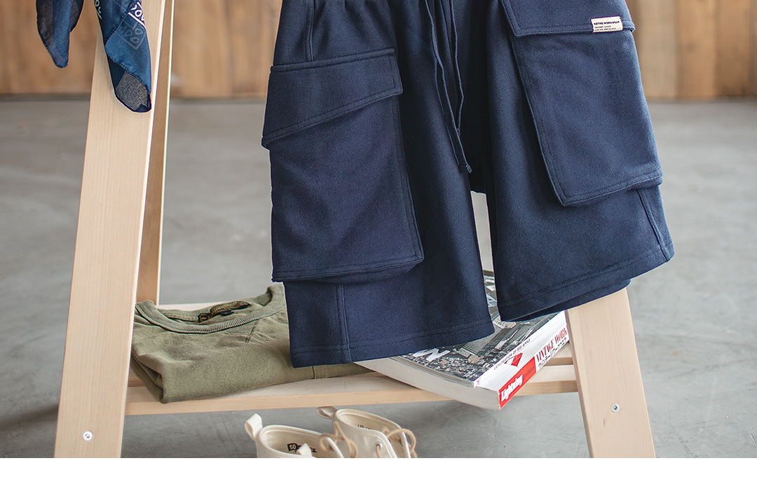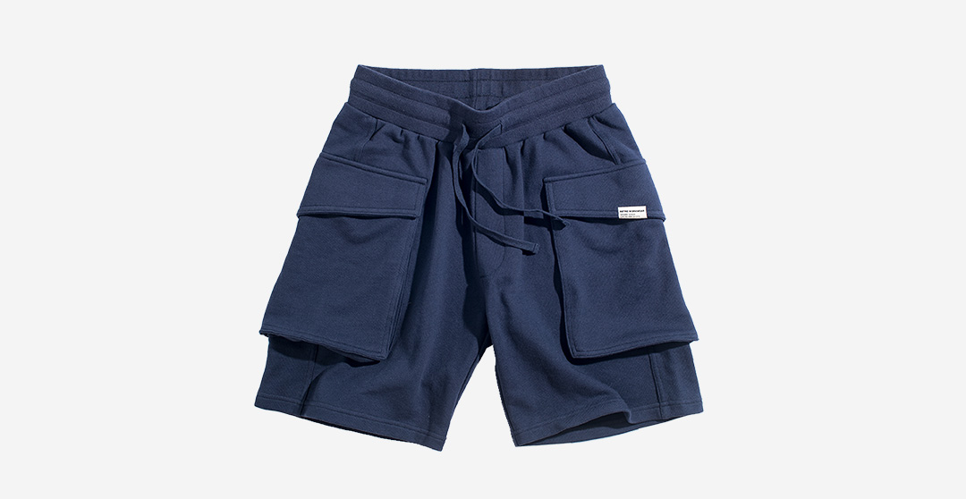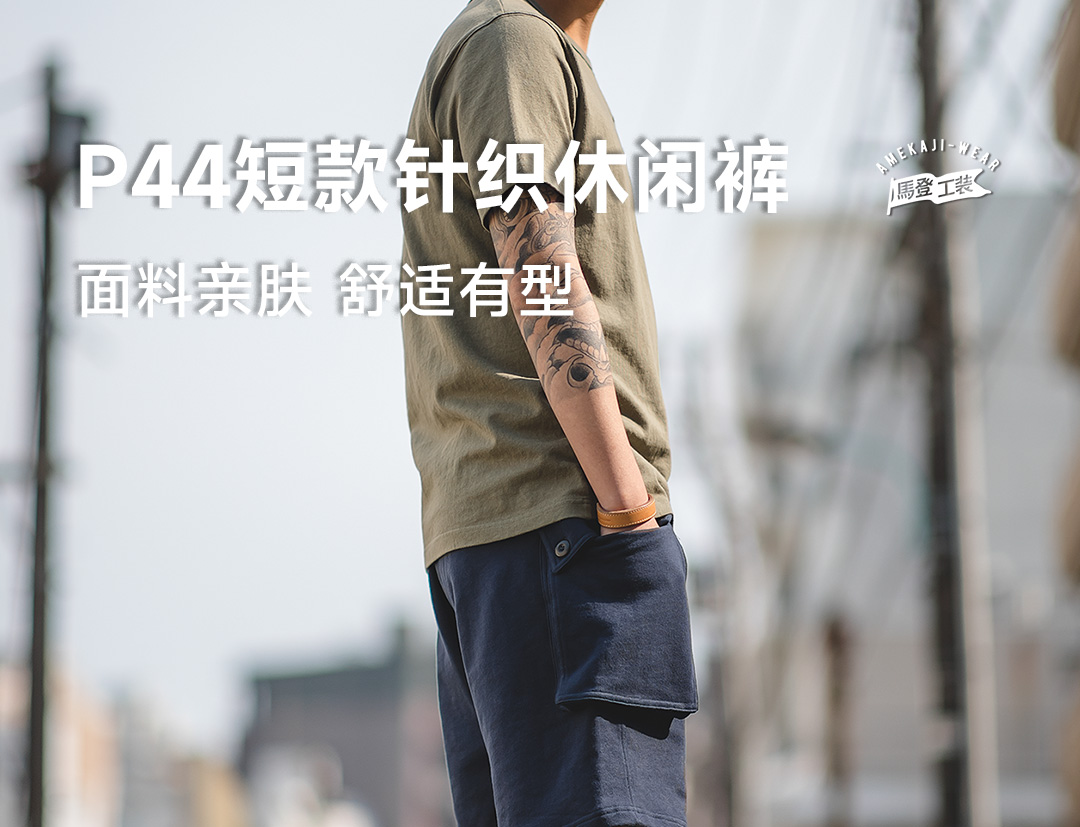 P44针织短裤大口袋运动复古马裤五分裤男夏 藏青色 S