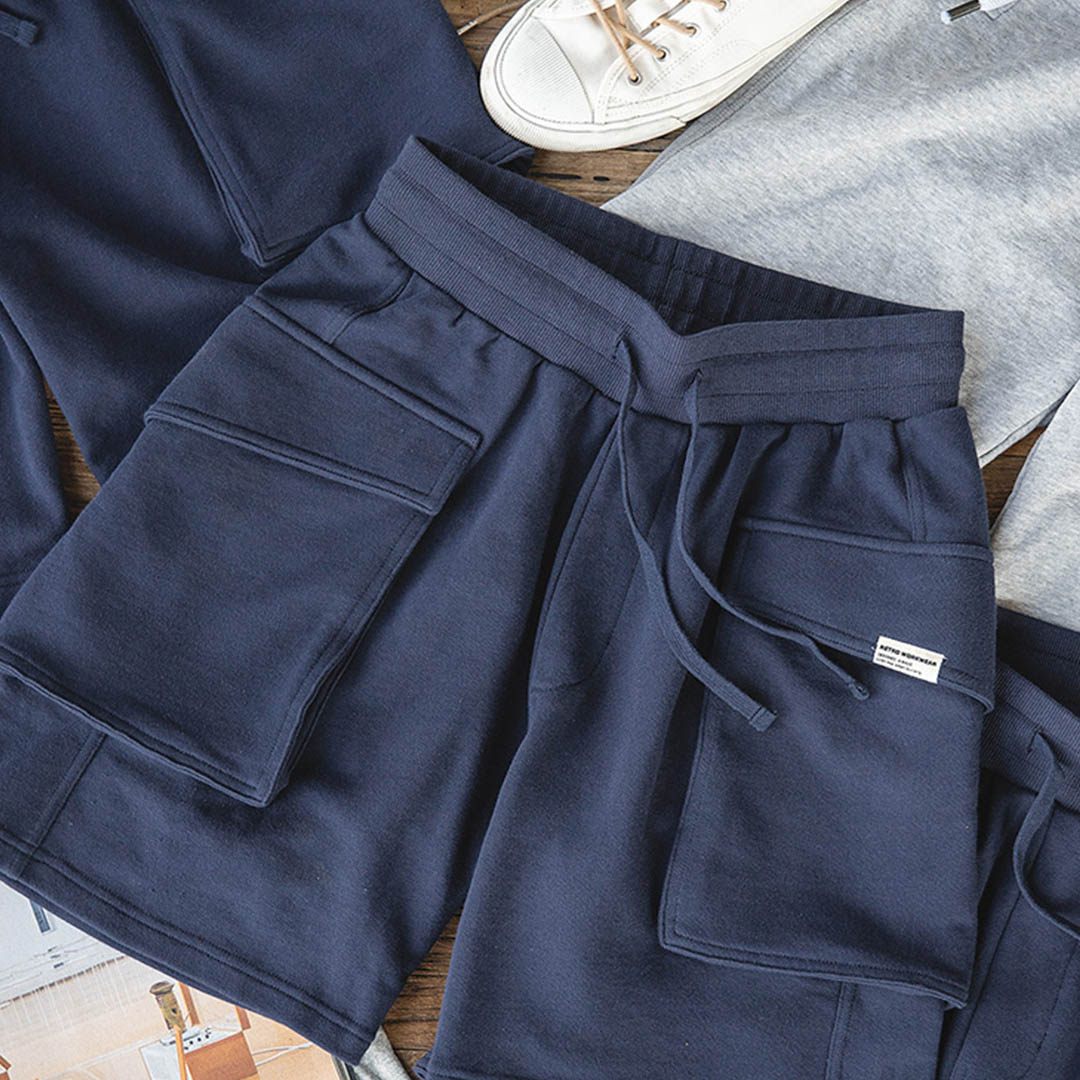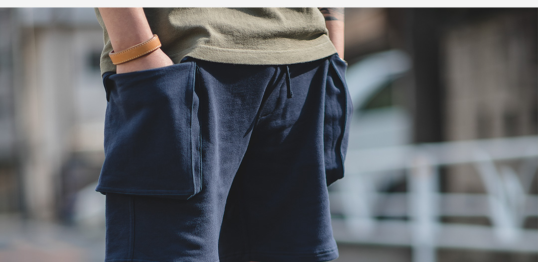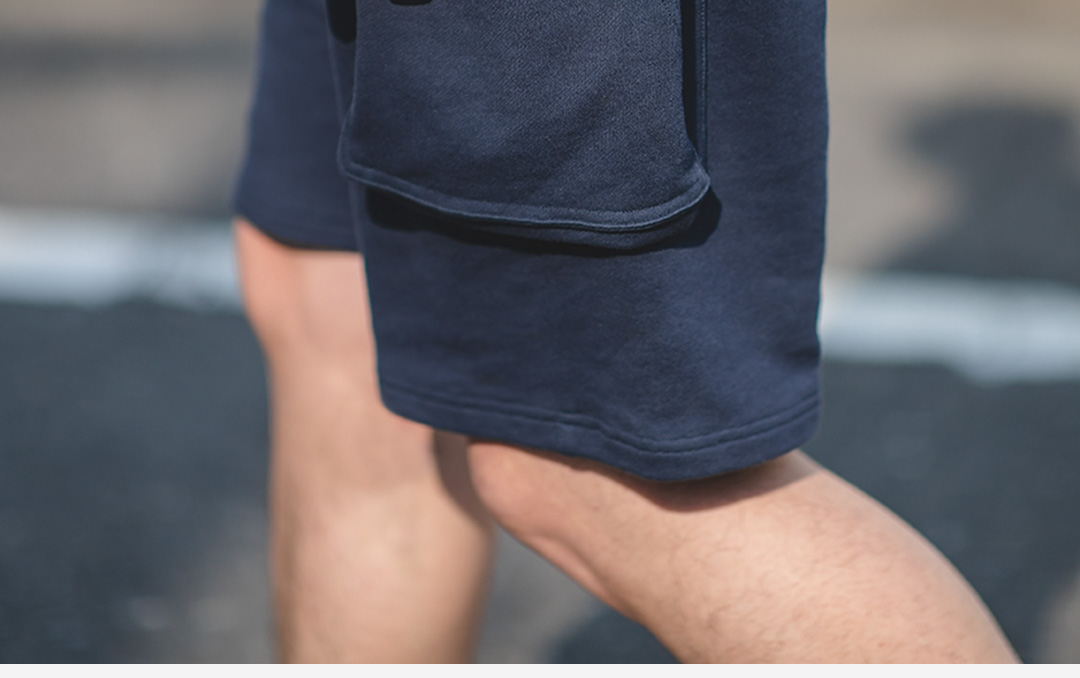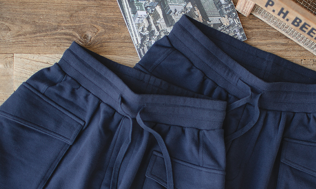 P44针织短裤大口袋运动复古马裤五分裤男夏 藏青色 S