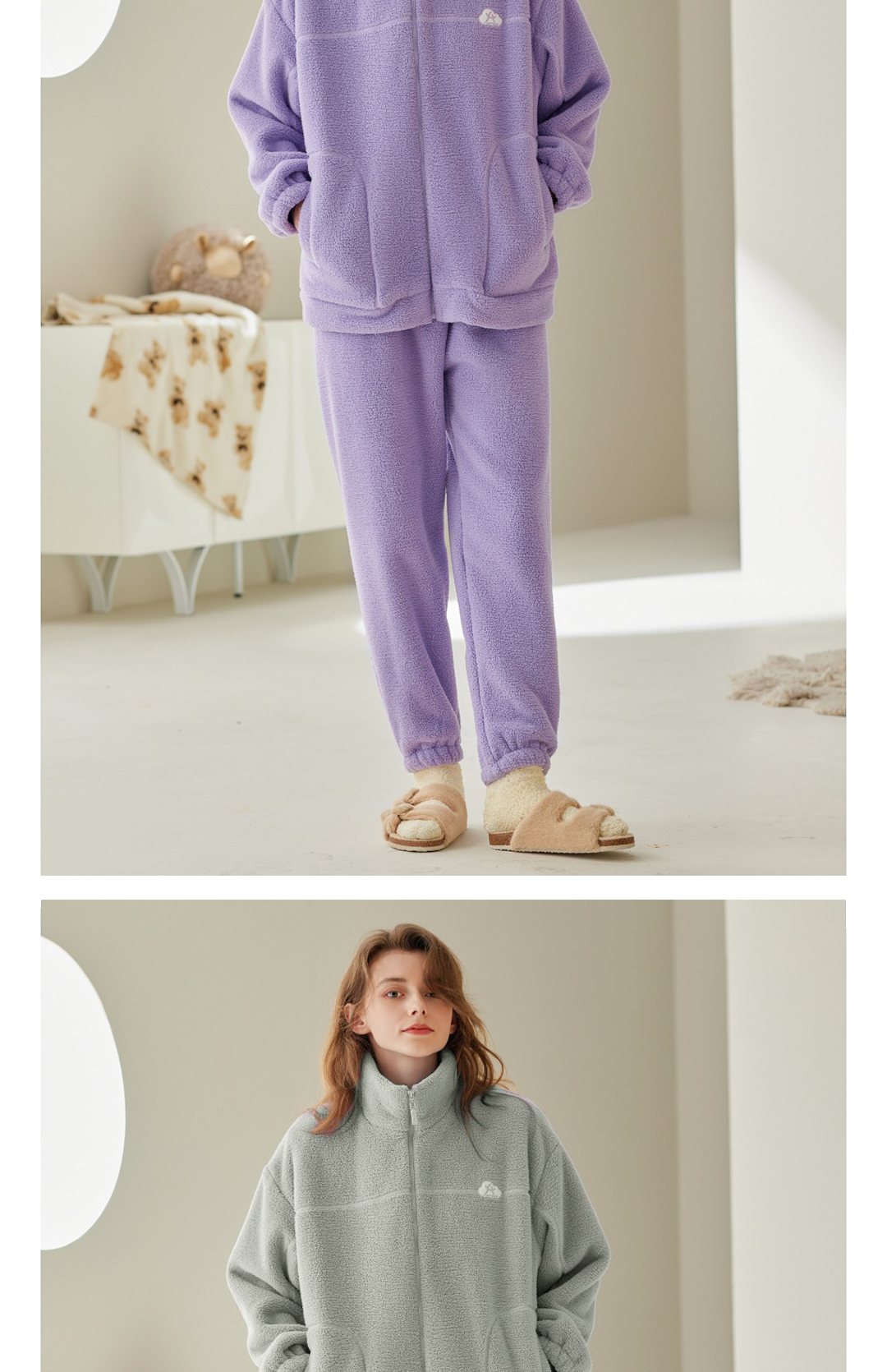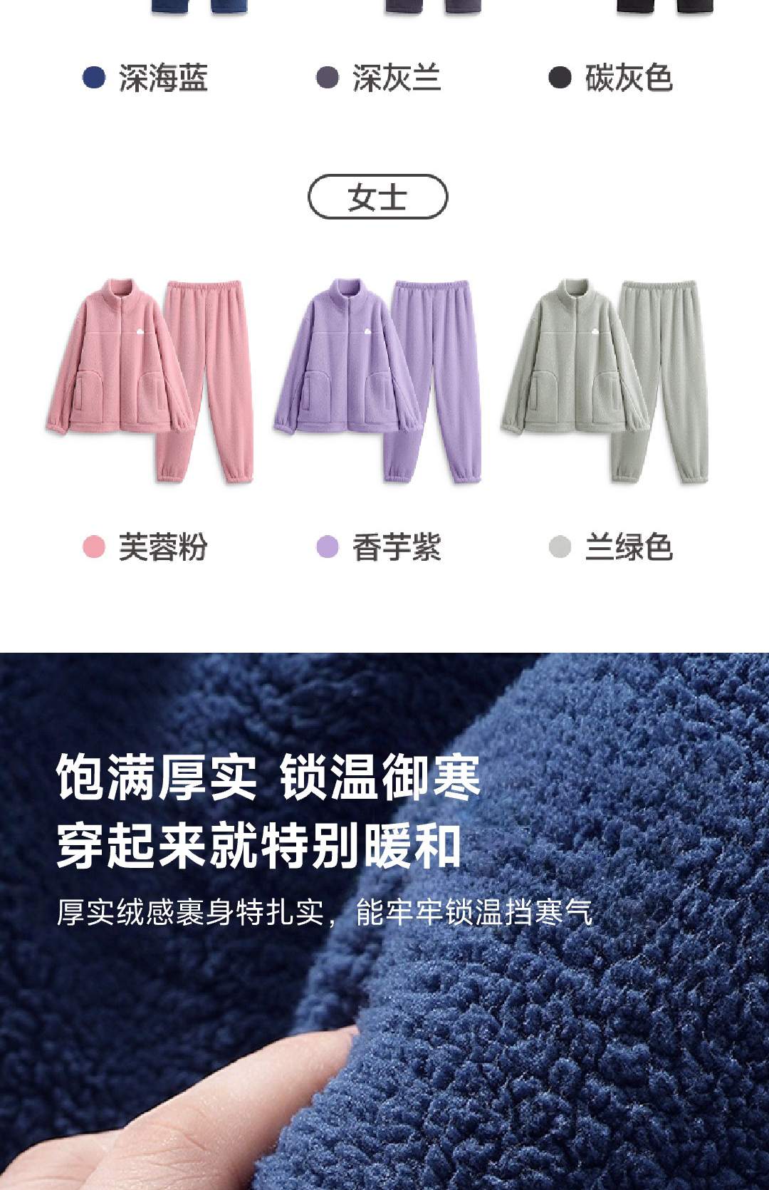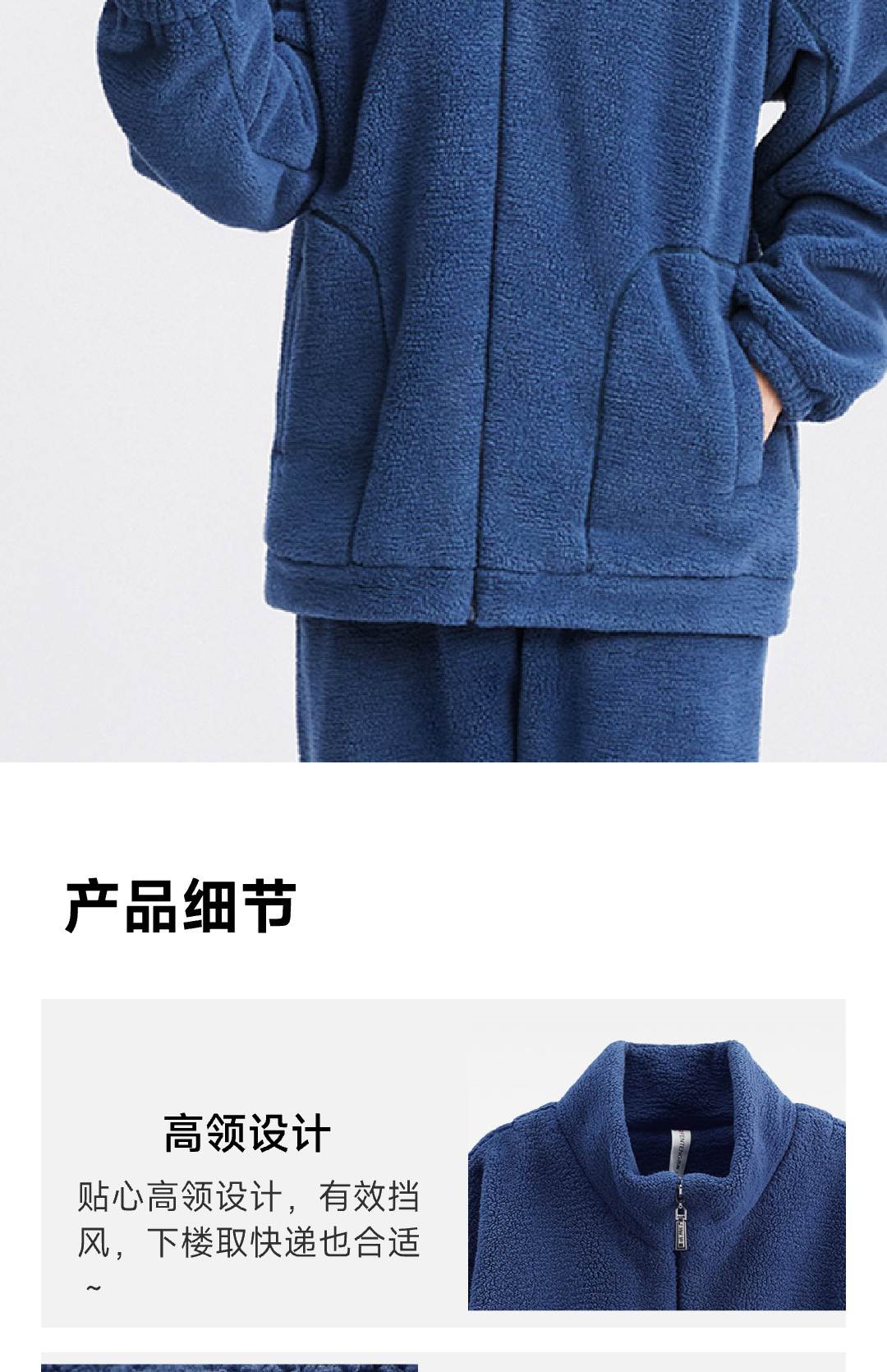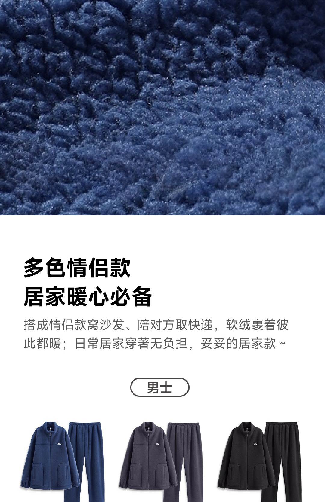秋冬抗静电加厚蓬蓬绒家居服睡衣 长袖款 XL 深灰兰-F0647男款