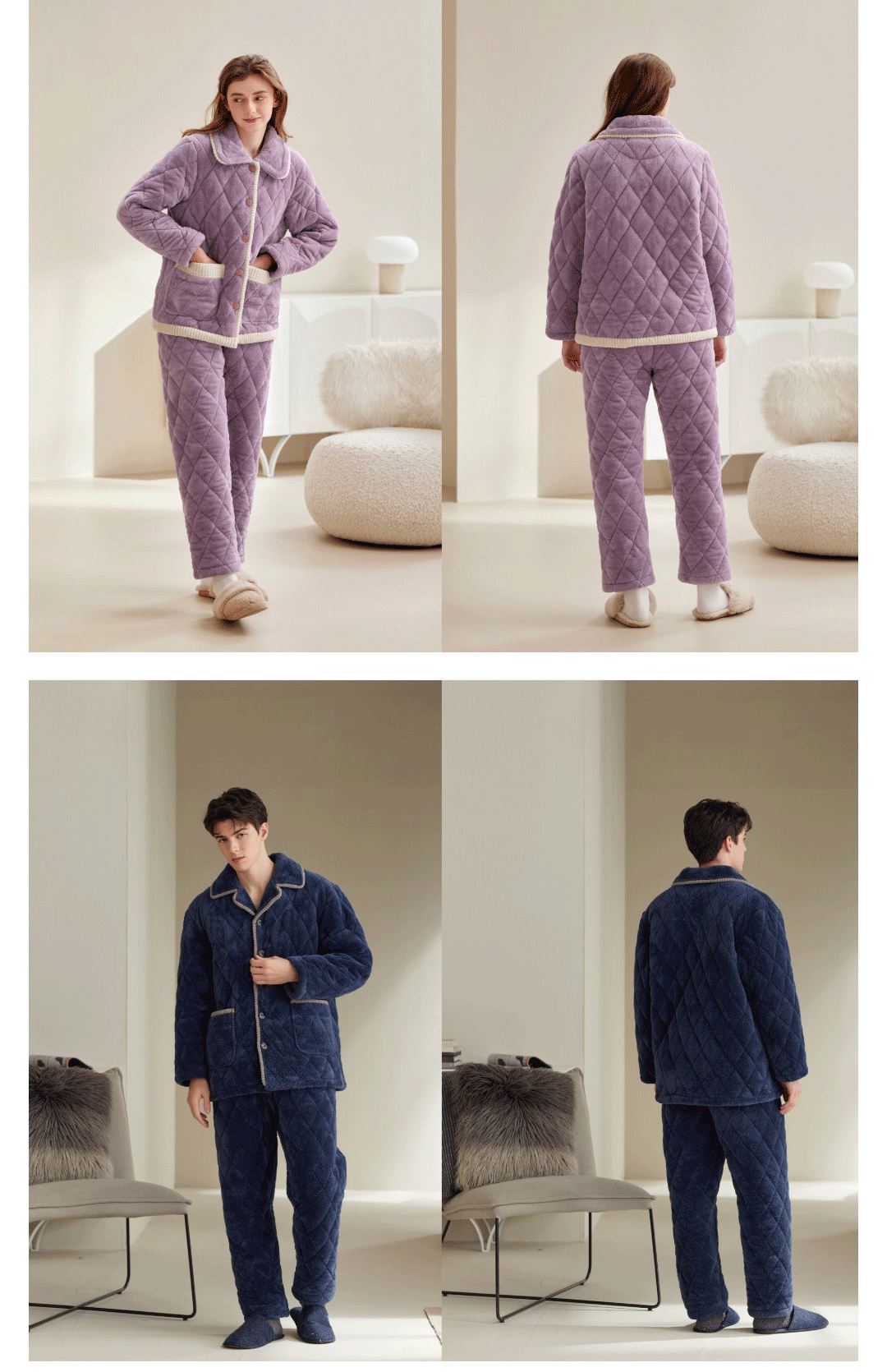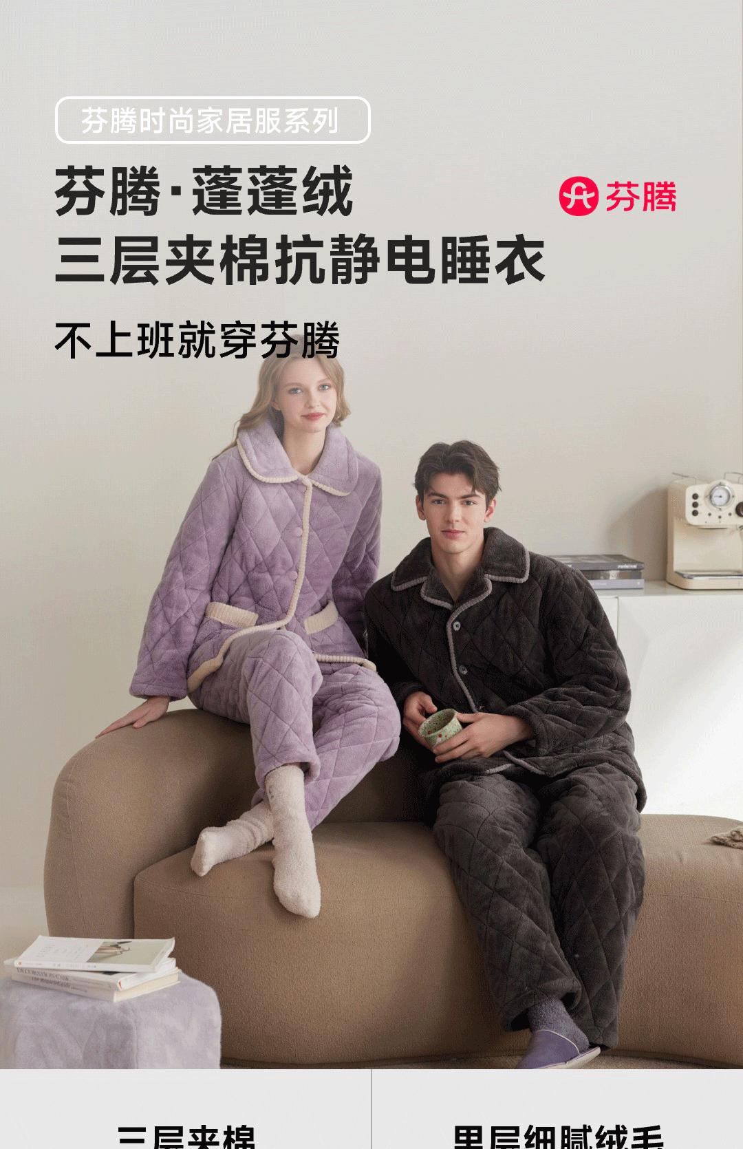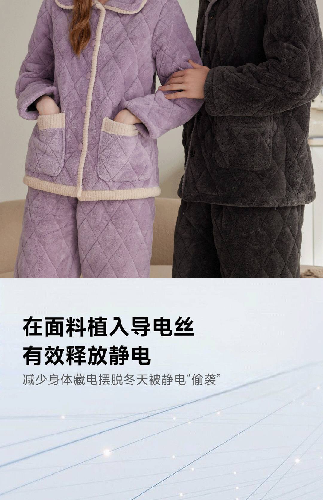 冬季加厚情侣珊瑚绒三层夹棉家居服套装 长袖款 L 碳灰-F0459男款