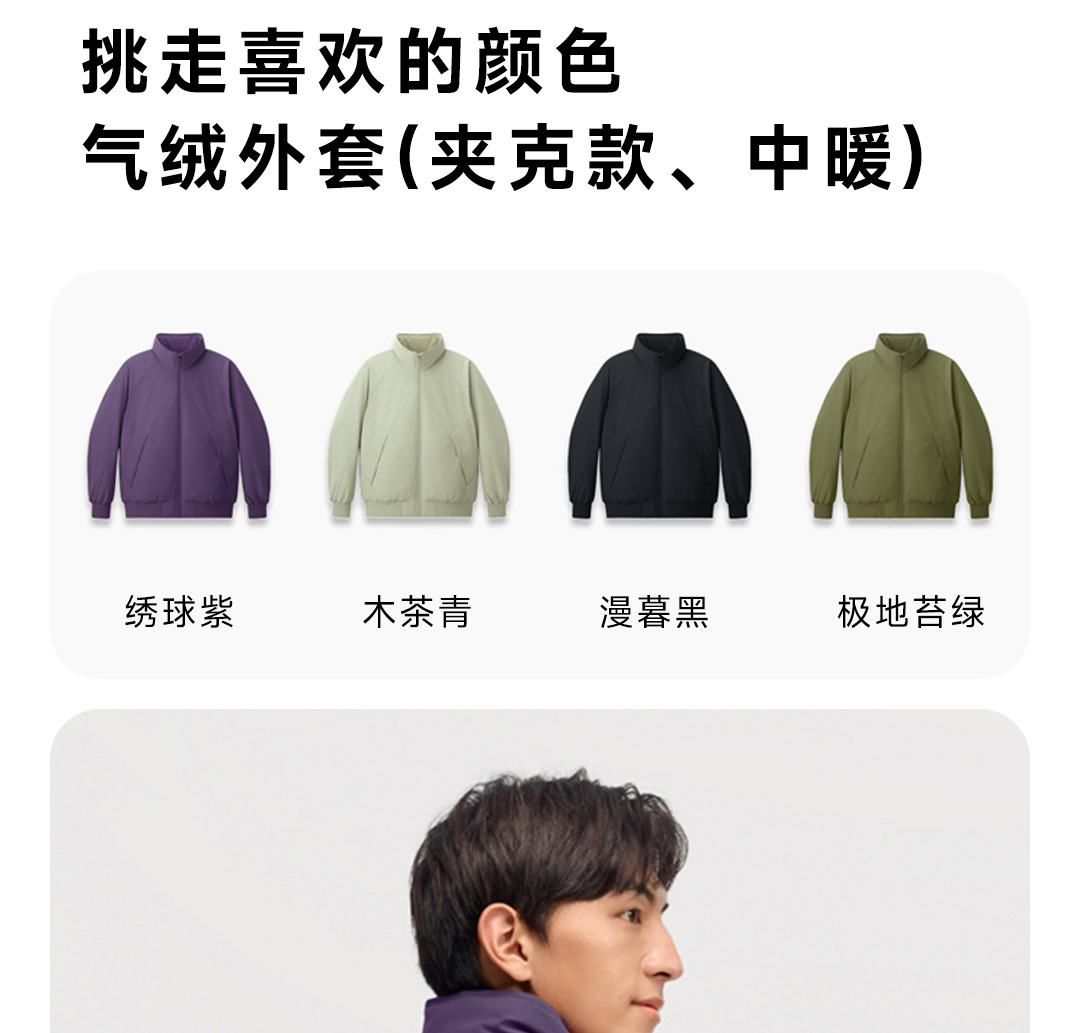 蕉下立领气绒服男士外套棉服棉衣秋冬夹克男保暖上衣防风 L 极地苔绿