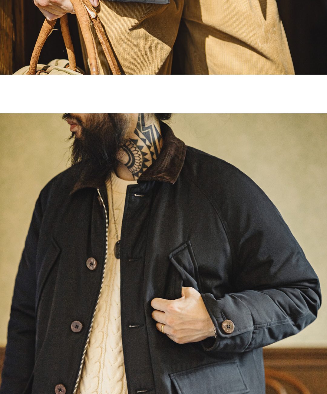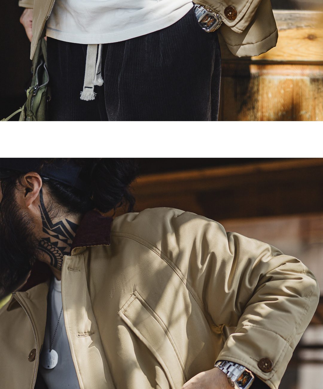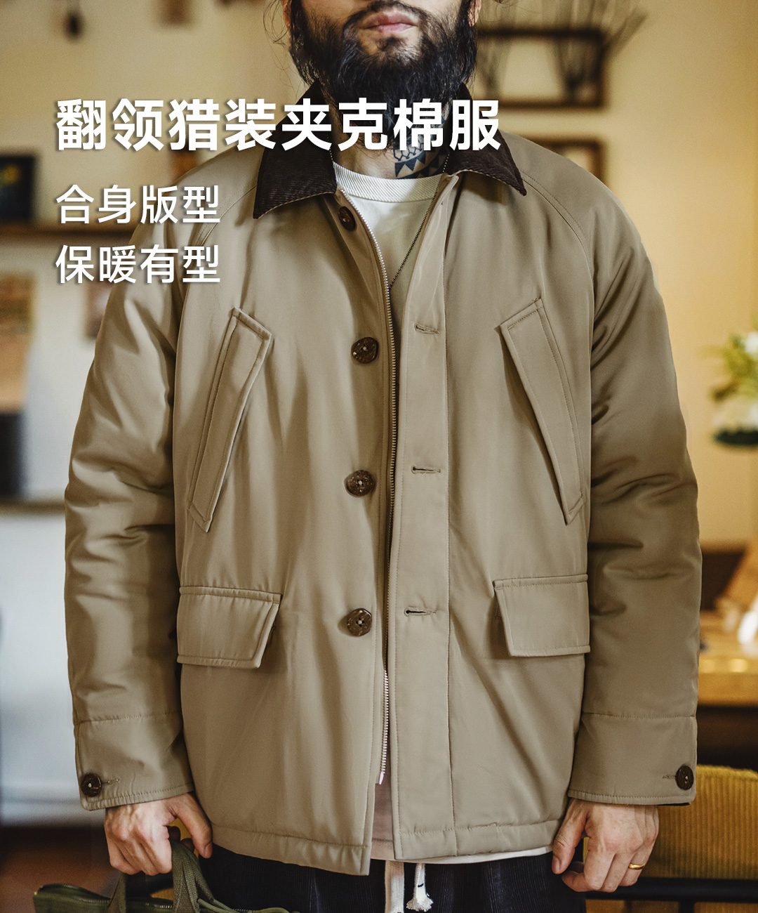 马登工装美式复古猎装夹克棉服翻领加厚保暖棉衣外套男秋冬 S 卡其