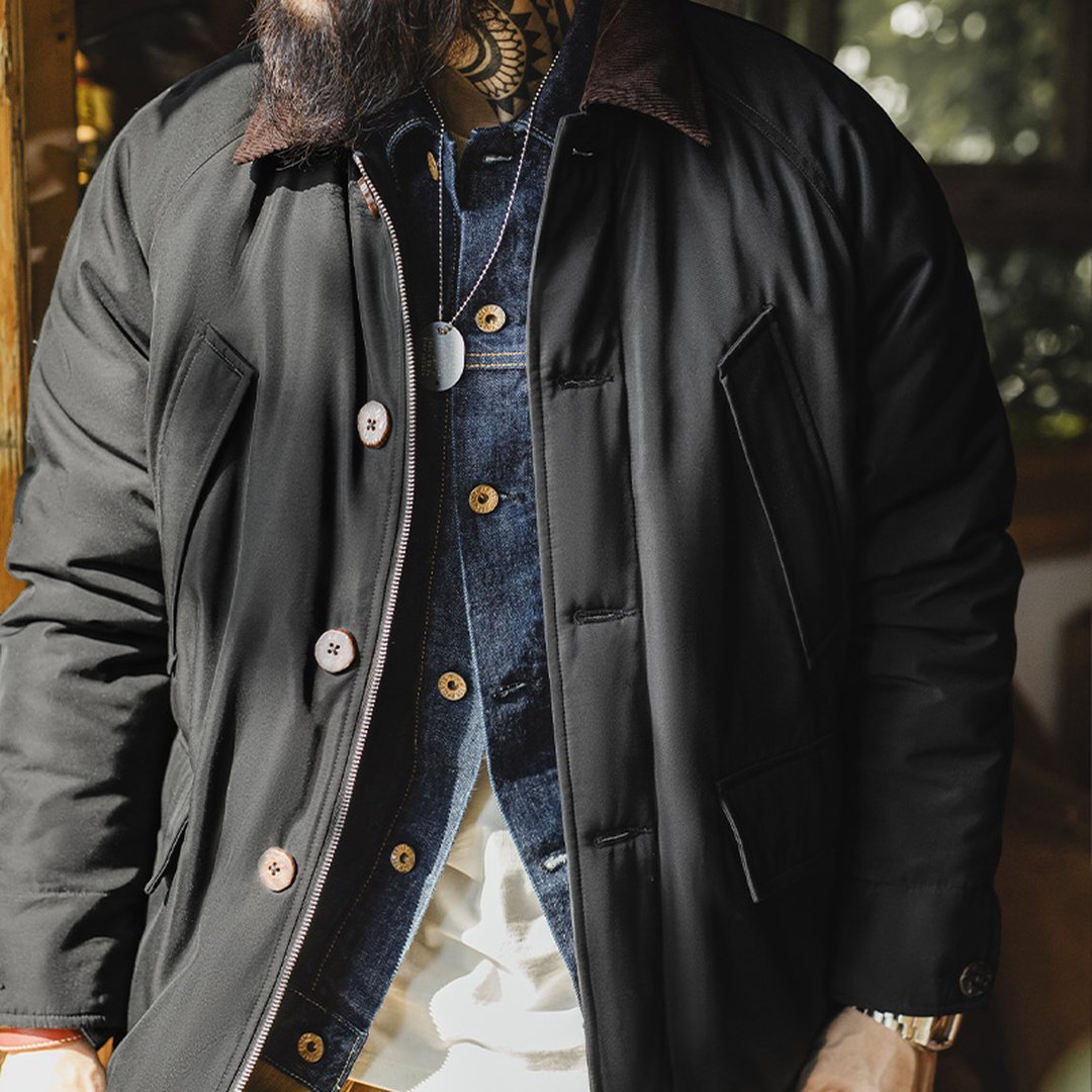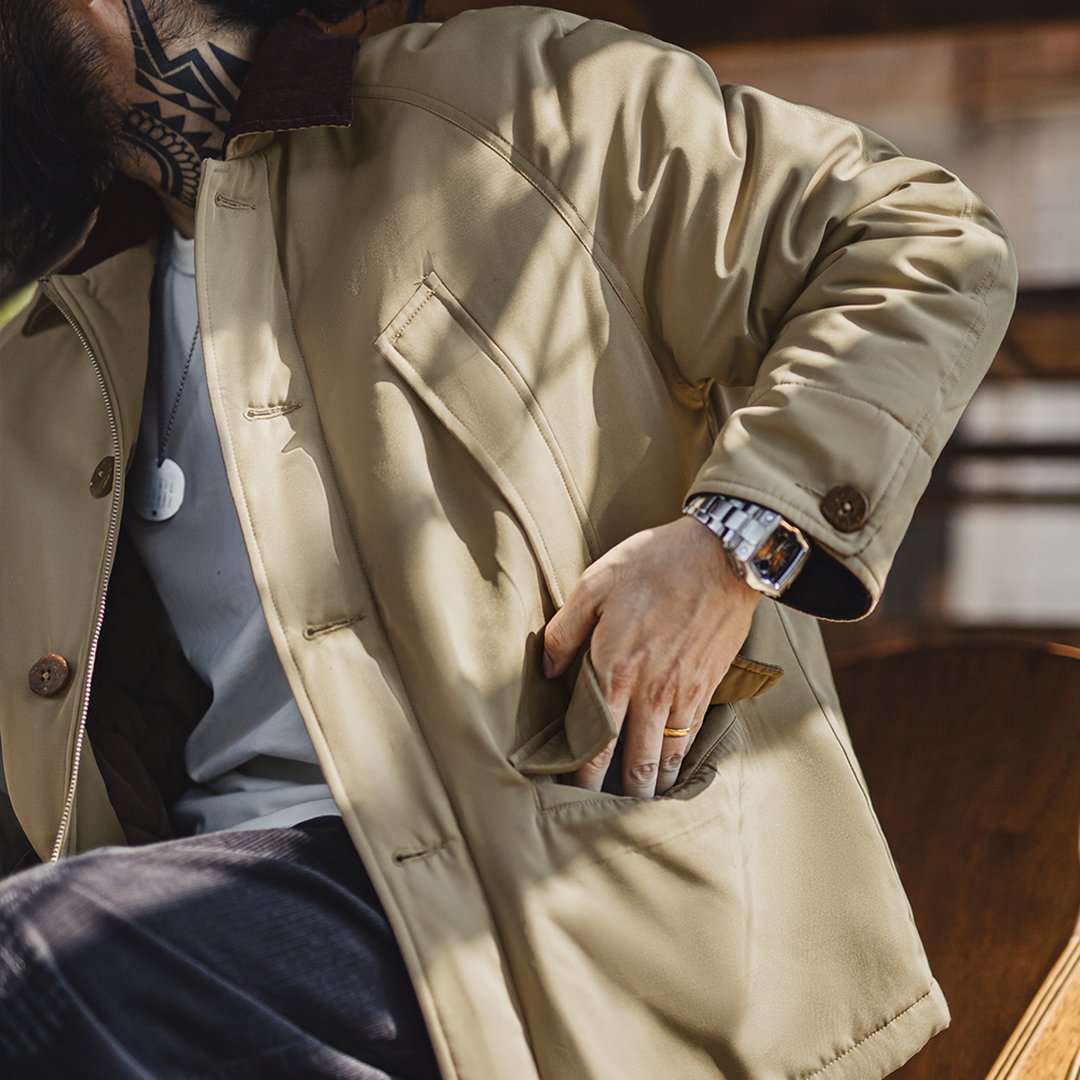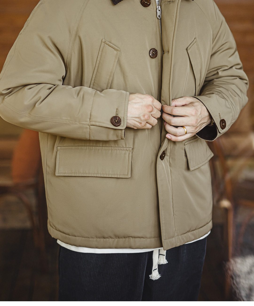 马登工装美式复古猎装夹克棉服翻领加厚保暖棉衣外套男秋冬 S 卡其