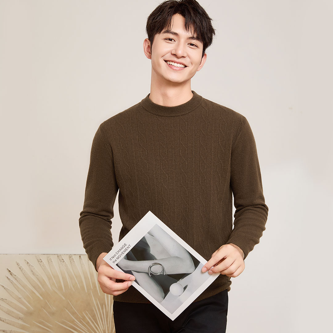 PROEASE美丽诺男士提花圆领羊毛衫 ...