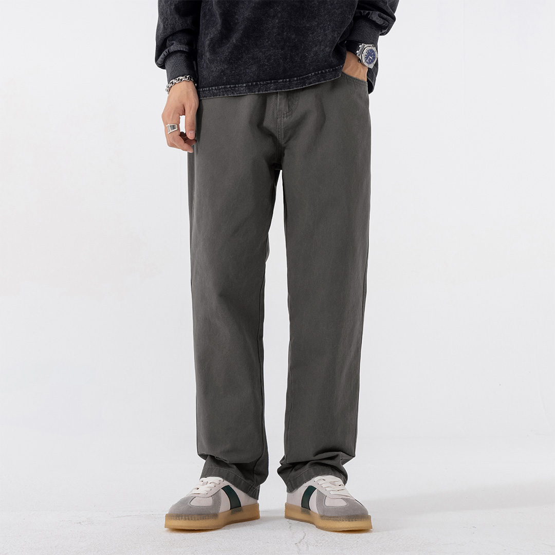 七面 重磅加厚全棉棉质宽松直筒休闲裤 黑...