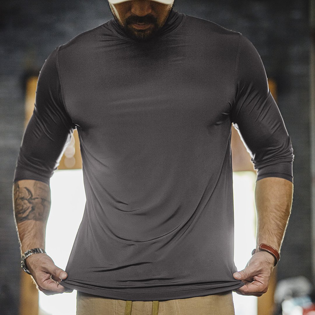 马登工装美式半高领长袖T恤健身弹力灰色修...